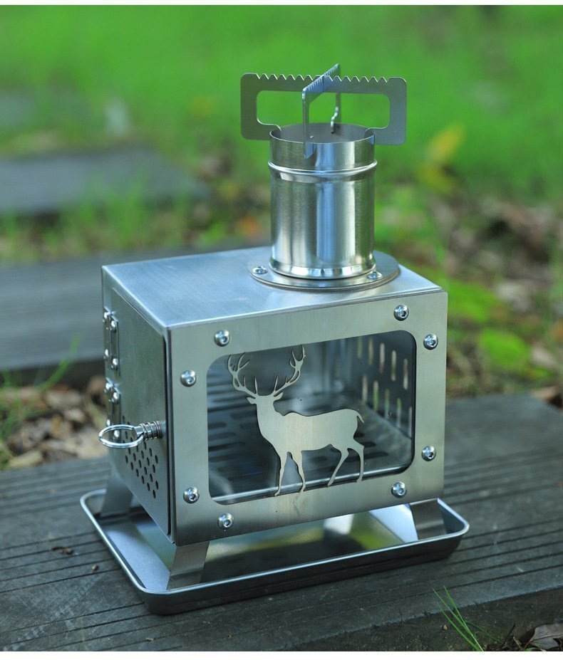 美品 薪 ストーブ アウトドア 調理器具 暖炉 キャンプ 煙突付き 耐熱ガラス窓付き 屋外 小型焚き火台 BBQ コンロ ステンレス鋼