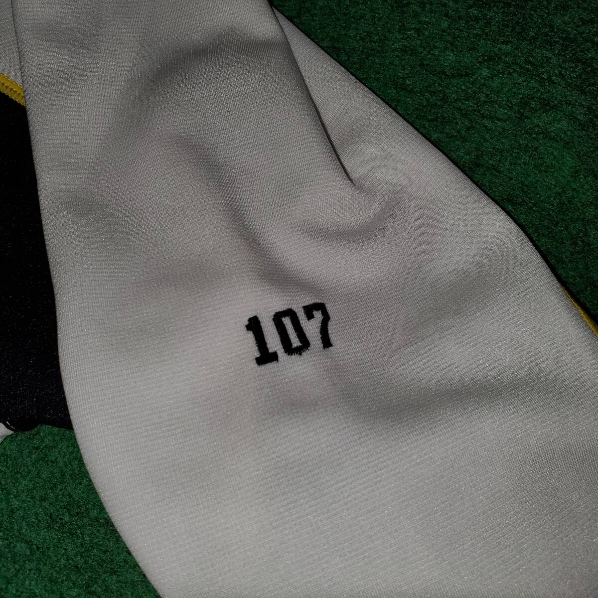 カラーはホームユニフォームのような白地に黒と細い黄色いラインが使われています。