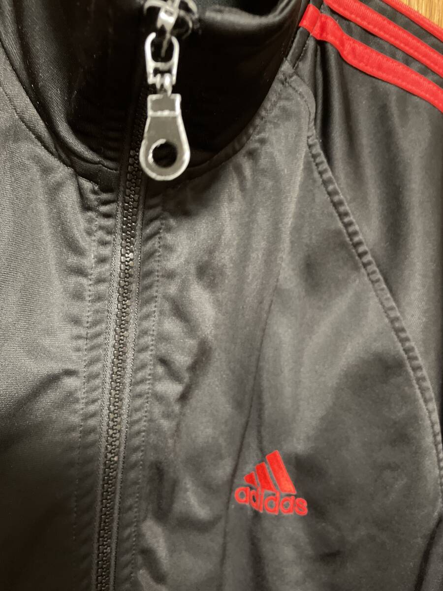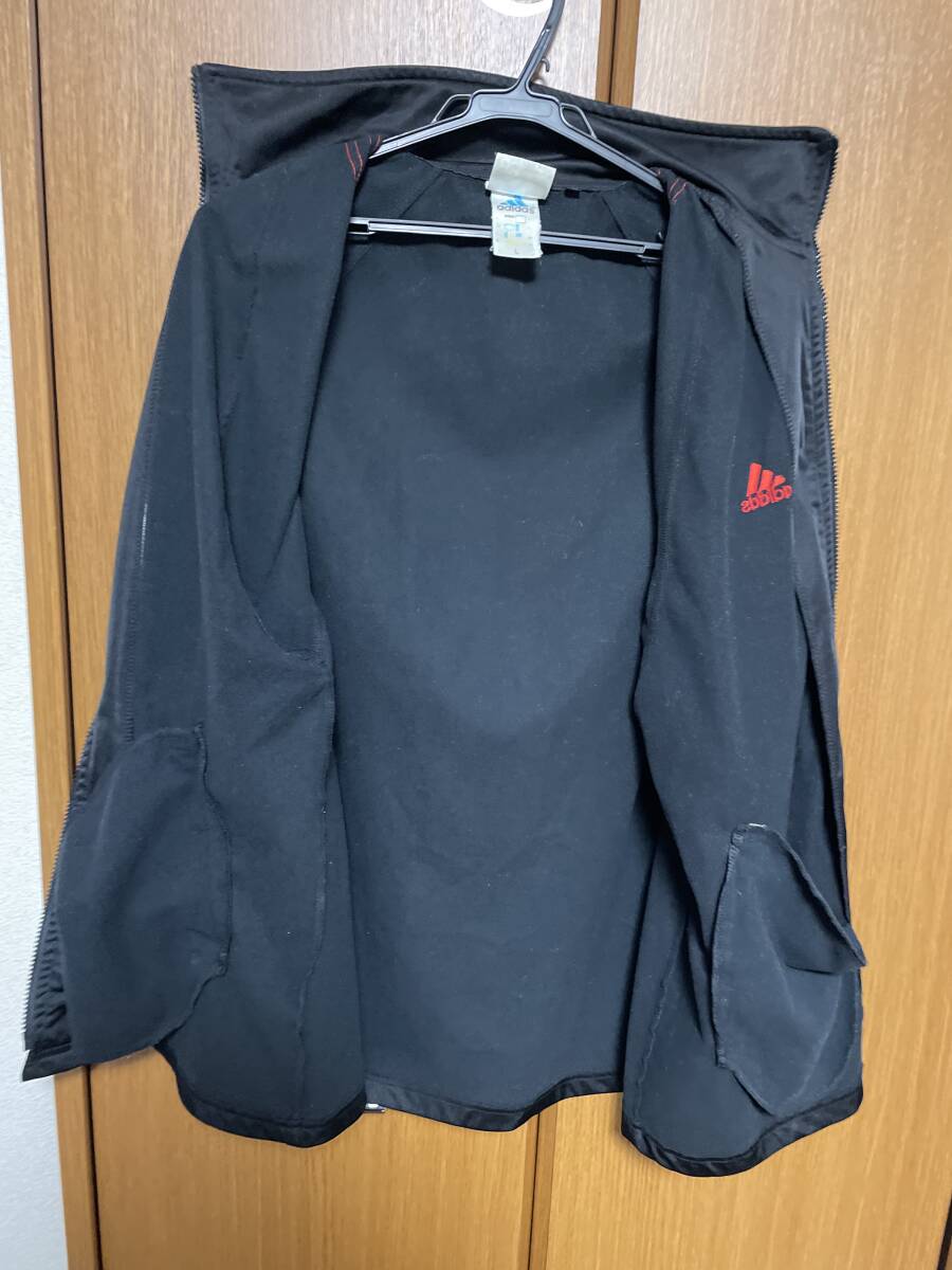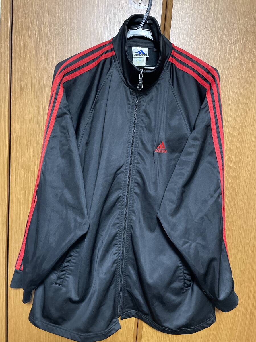 使用状況:ブラック地にレッド三本ラインのアディダス古着ジャージです。胸のロゴは刺繍仕上げ。表示サイズはLです。実寸は着丈約75センチ、肩幅約53センチ相当、胴幅脇下約60センチですので大き目なサイズです。ある程度年数が経過した品物ですがファスナーのコマ飛び、目立ったダメージ等もありません。少しくすんだレッドラインの00年代当時のクラシックな雰囲気あるジャージです。