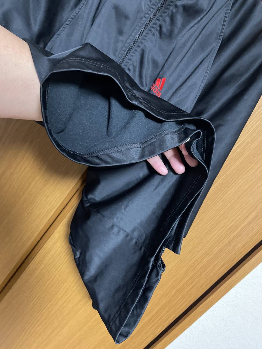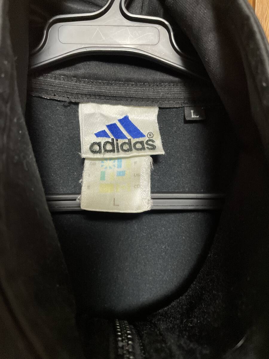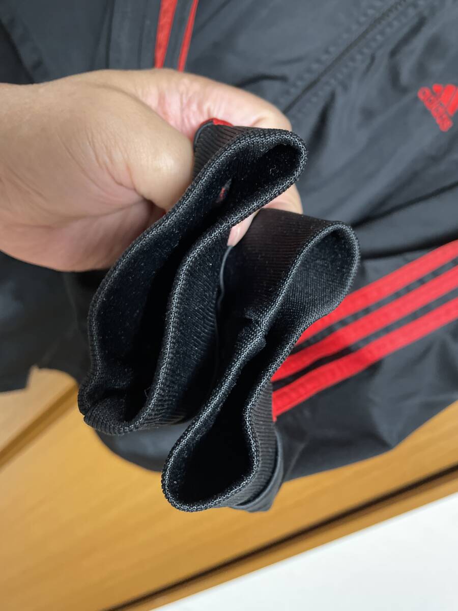 使用状況:ブラック地にレッド三本ラインのアディダス古着ジャージです。胸のロゴは刺繍仕上げ。表示サイズはLです。実寸は着丈約75センチ、肩幅約53センチ相当、胴幅脇下約60センチですので大き目なサイズです。ある程度年数が経過した品物ですがファスナーのコマ飛び、目立ったダメージ等もありません。少しくすんだレッドラインの00年代当時のクラシックな雰囲気あるジャージです。