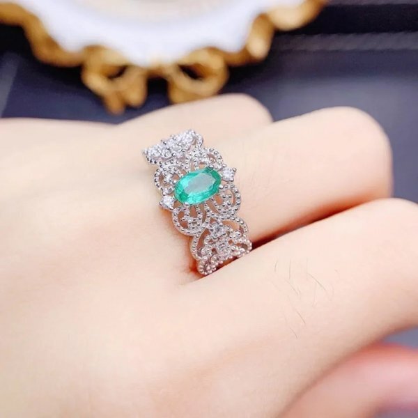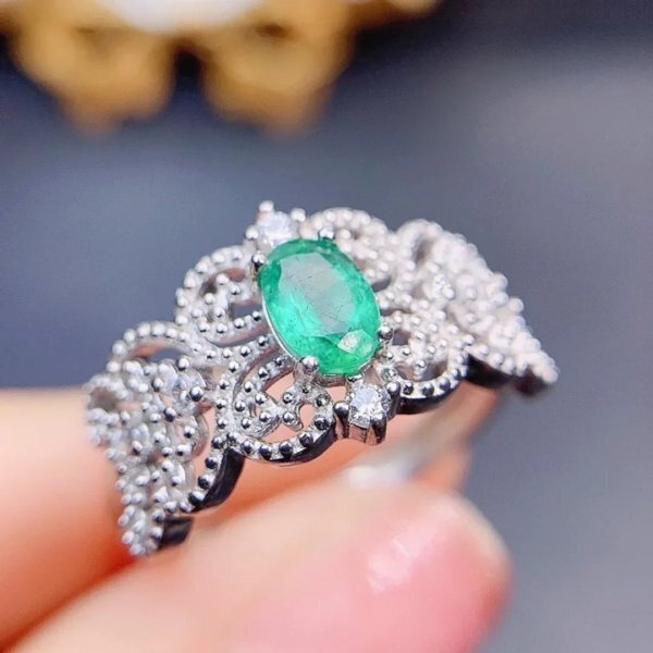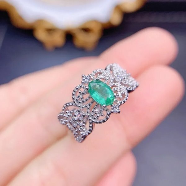 925スターリングシルバーのエメラルドリング、伝統的なスタイル、4×6mm、0.5CT