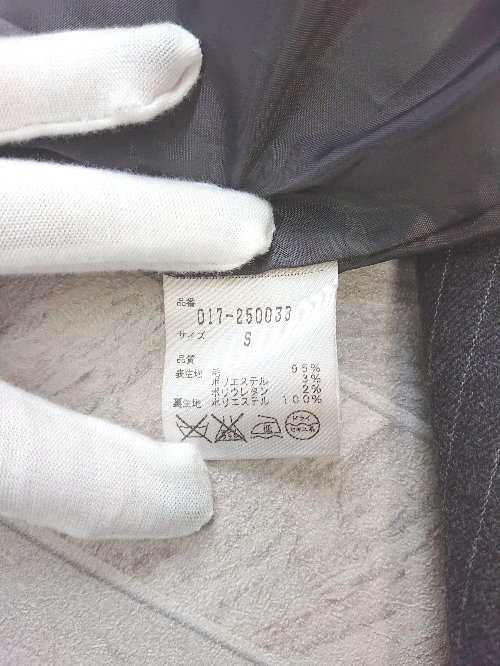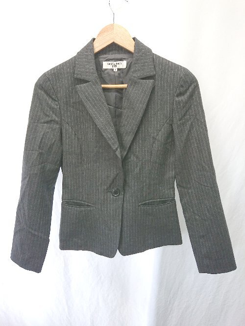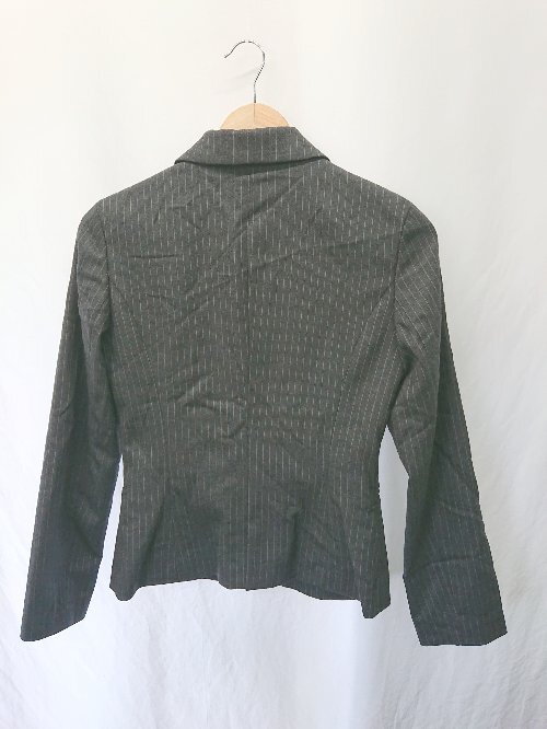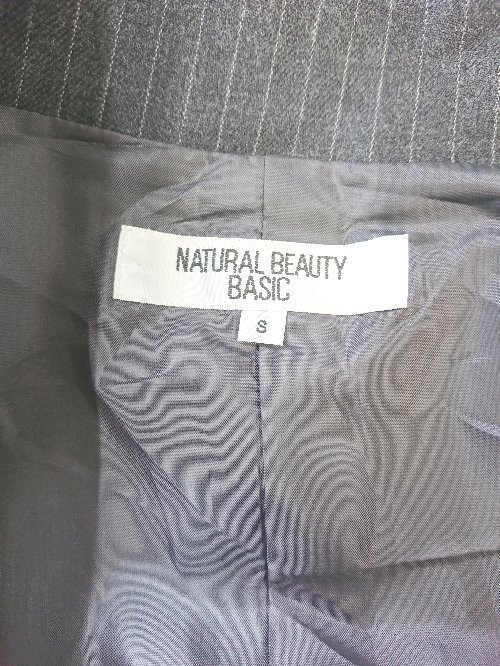 ◇ ⊇ NATURAL BEAUTY BASIC ストライプ柄 ウール 長袖 ジャケット サイズS ブラック レディース E