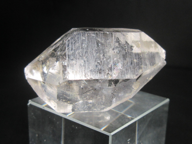 ご覧のように主に両端がポイント(ダブルターミネーター)となっており、内部に黒い内包物(炭素やマンガンと言われる)や太古の水を湛えていることが多い、大変に魅力的な水晶です。