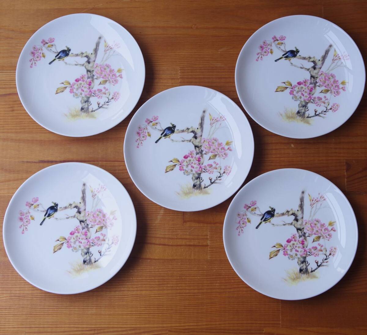 クィーンアン シャングリラ 花柄 鳥 デザートプレート ケーキ皿 16cm Queen Anne Shangli-la #250520-7~11 イギリス ヴィンテージ 食器 桜