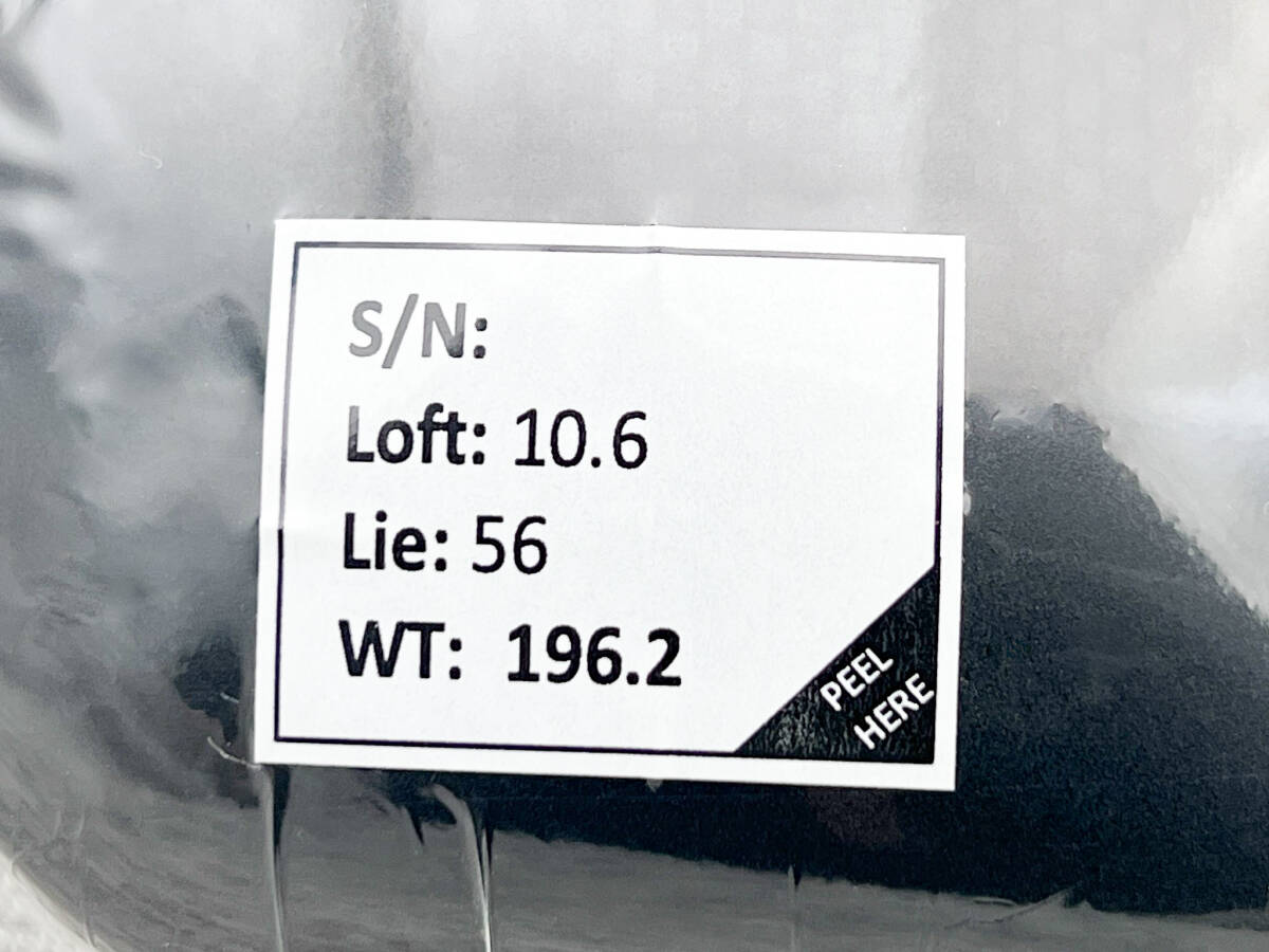 CT値 256 ロフト10.5°表記(リアルロフト 10.6°) ライ角 56.0° ヘッド重量 207g(スリーブ、ウェイト、シュリンク、すべて込み実測値) スリーブ重量 約9g ホーゼル径 0.335 inch