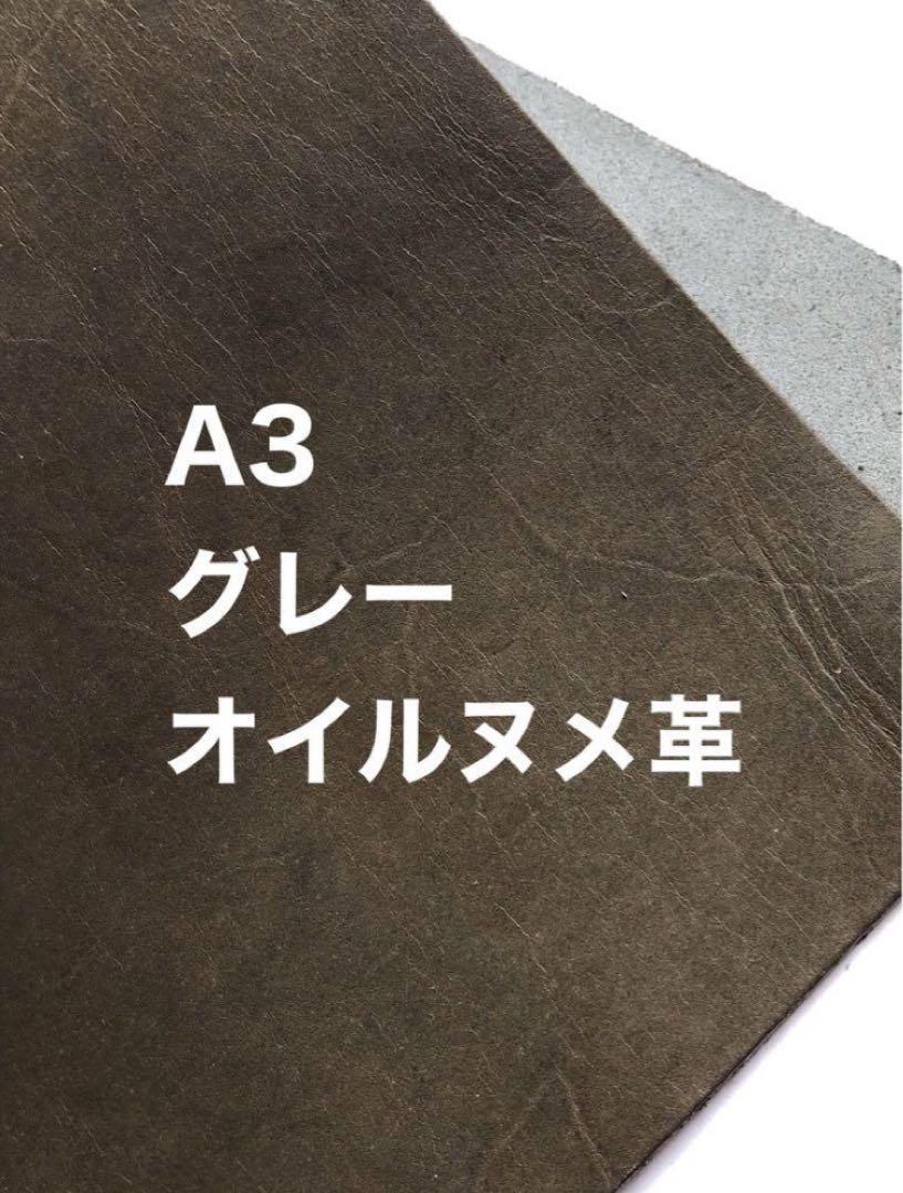 【 大きいA3 】厚さ約1.5~2ミリ 渋色グレー オイルヌメ革 男前ワイルドレザー レザークラフト ハンドメイド バッグ作り 素材 本革