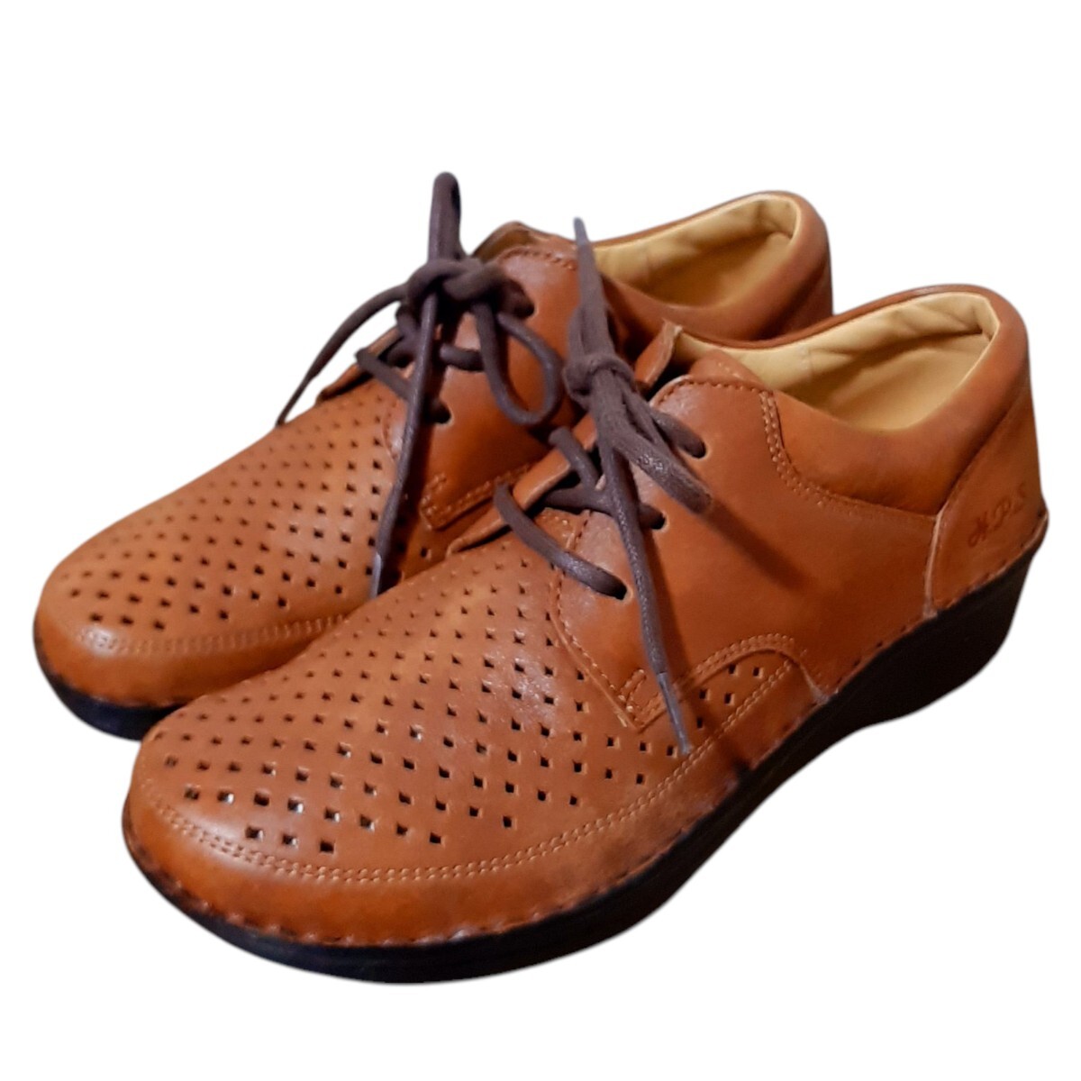 また、機能性だけでなく全体にパンチングの穴を開けることで、足に合わせて革が伸びやすいので、外反母趾の方にもオススメのデザインとなっており、H.P.S.で不動の人気を誇る商品となりました。