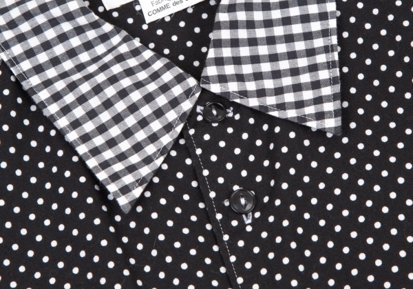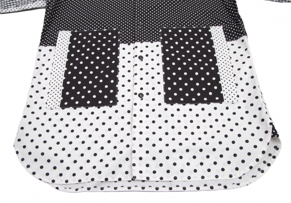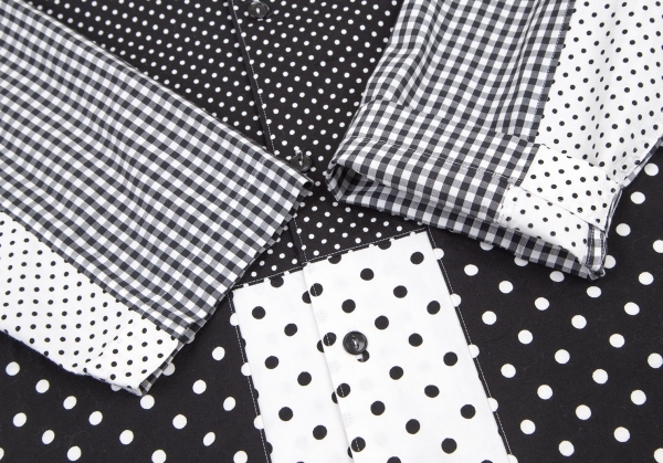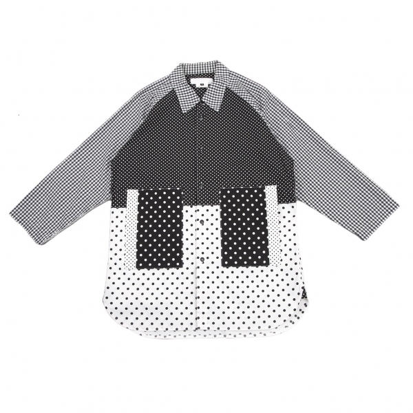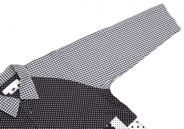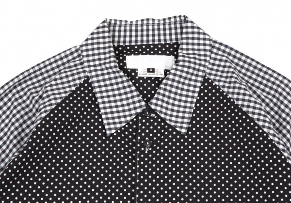| ガンリュウGANRYU ドットギンガムチェック切替シャツ 黒白S |