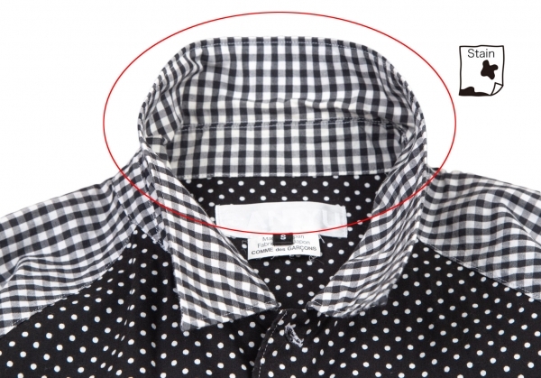 | コンディション | 首周りにシミ、後ろ裾に点シミがあります(写真参照)。その他目立ったシミ、汚れ、ほつれ等なくいい状態です。クリーニング済み |