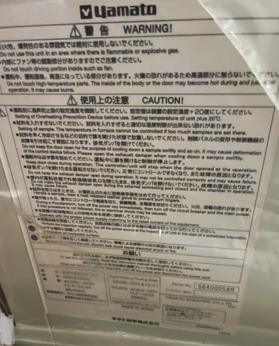 メーカー:Yamato DKG610 ヤマト科学(株)急速加熱冷却オーブンcode:212884 未開封