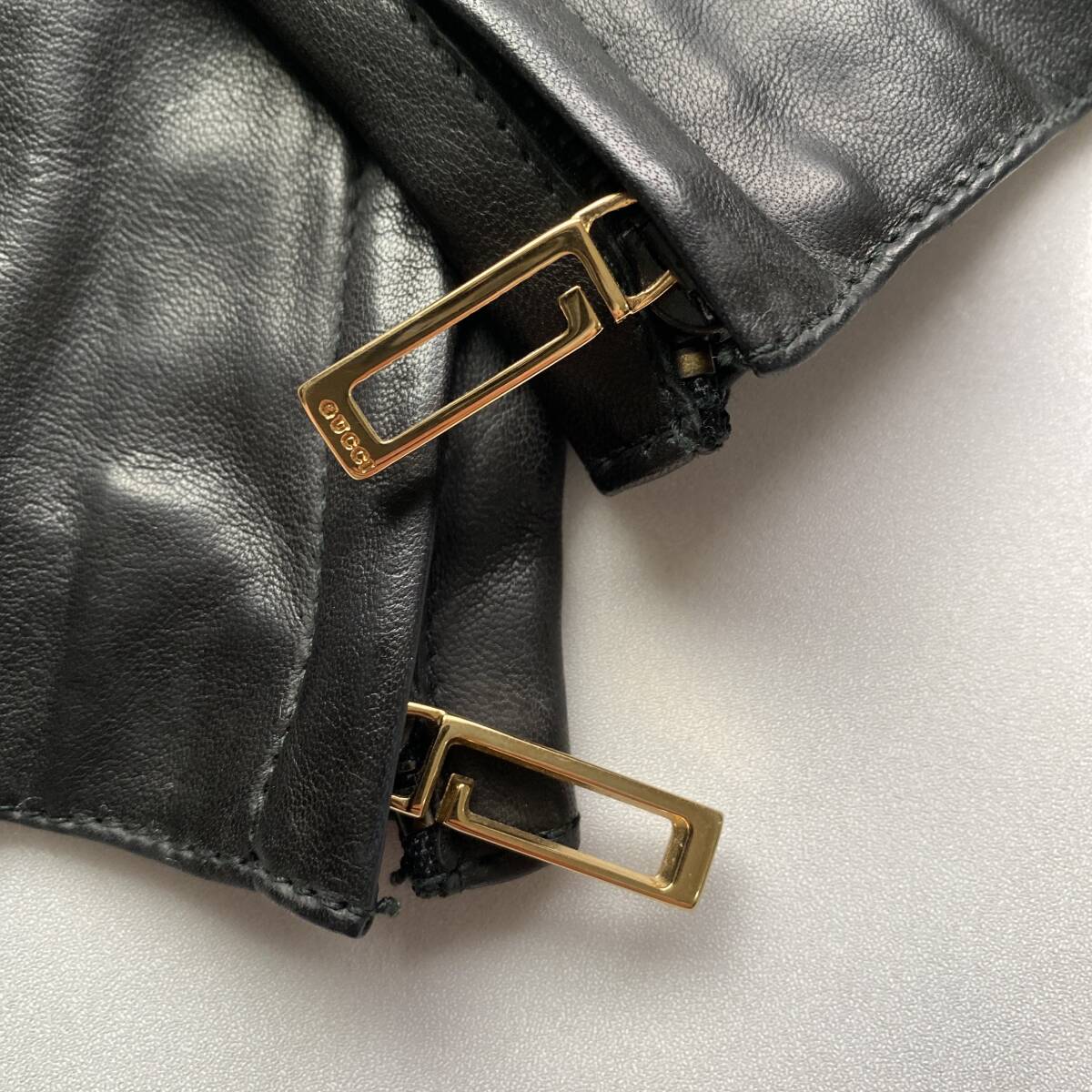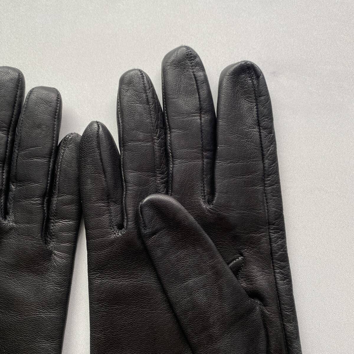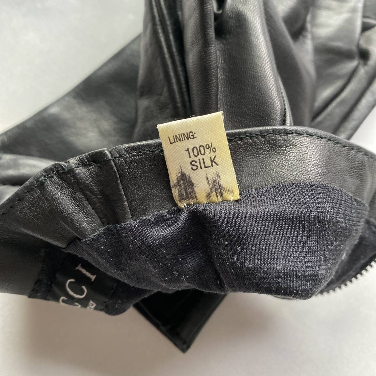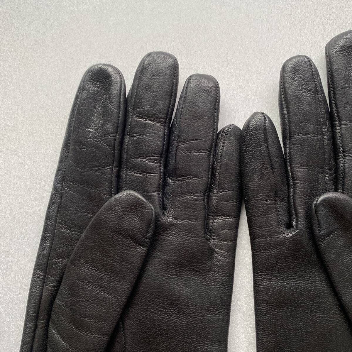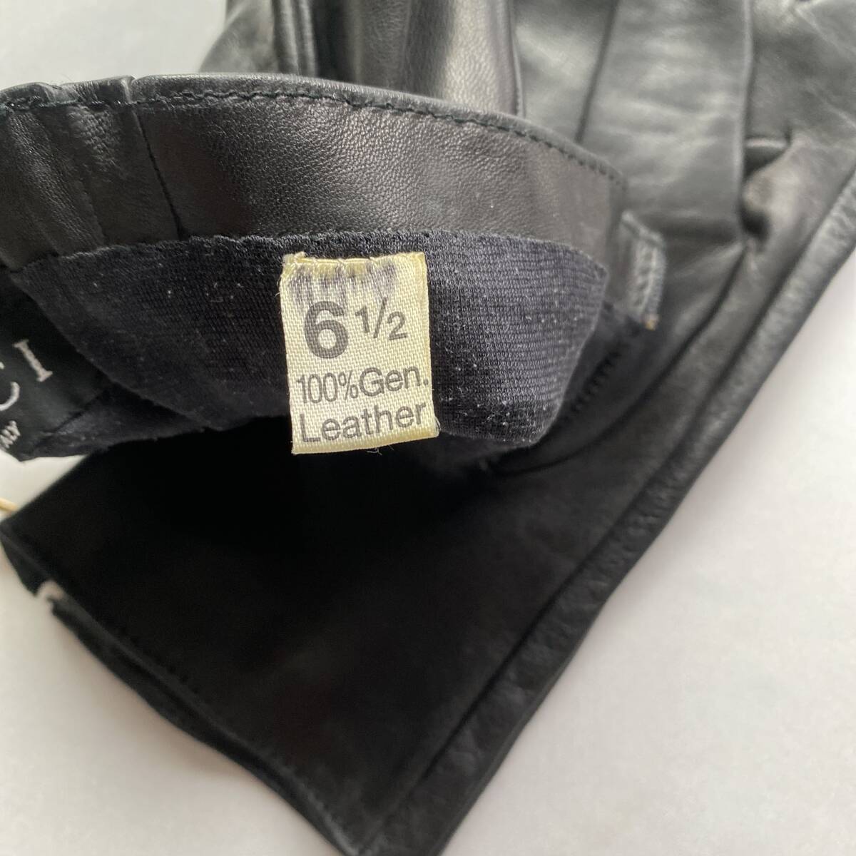 【美品】イタリア製 グッチ GUCCI レディース レザーグローブ ブラック 黒革手袋 サイズ6ハーフ シルク裏地