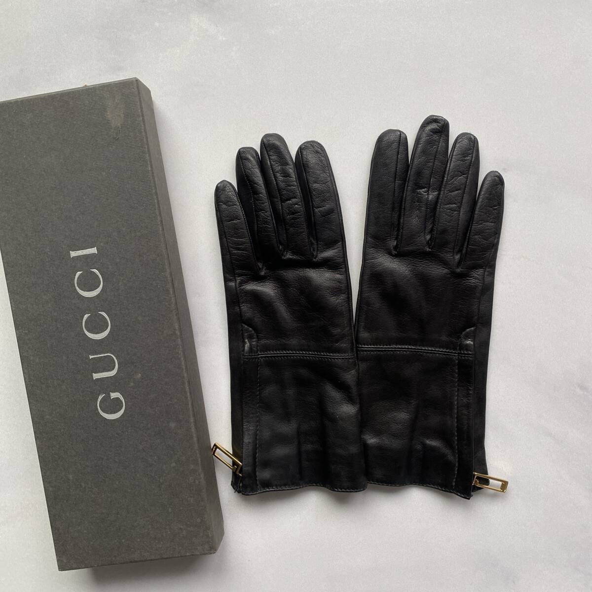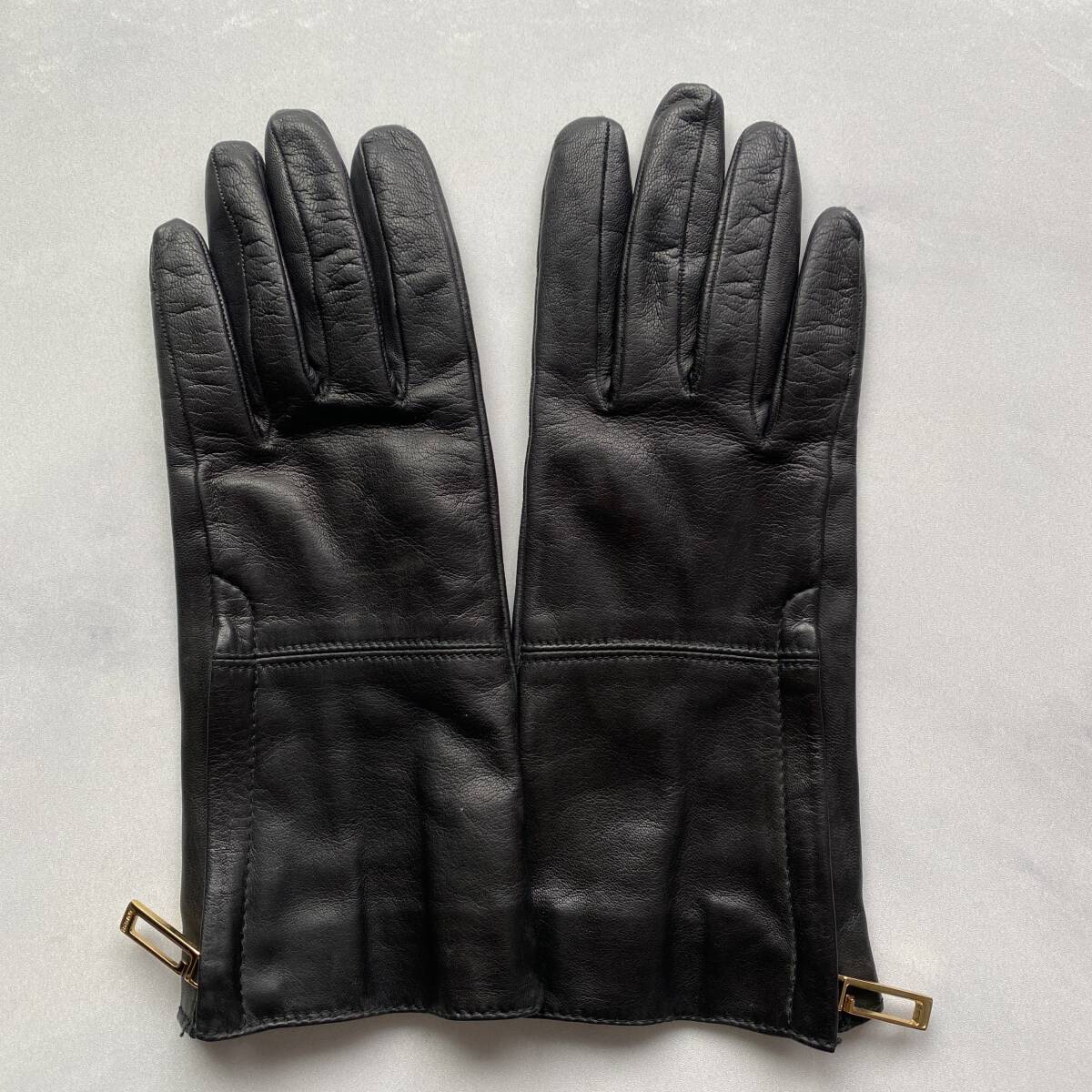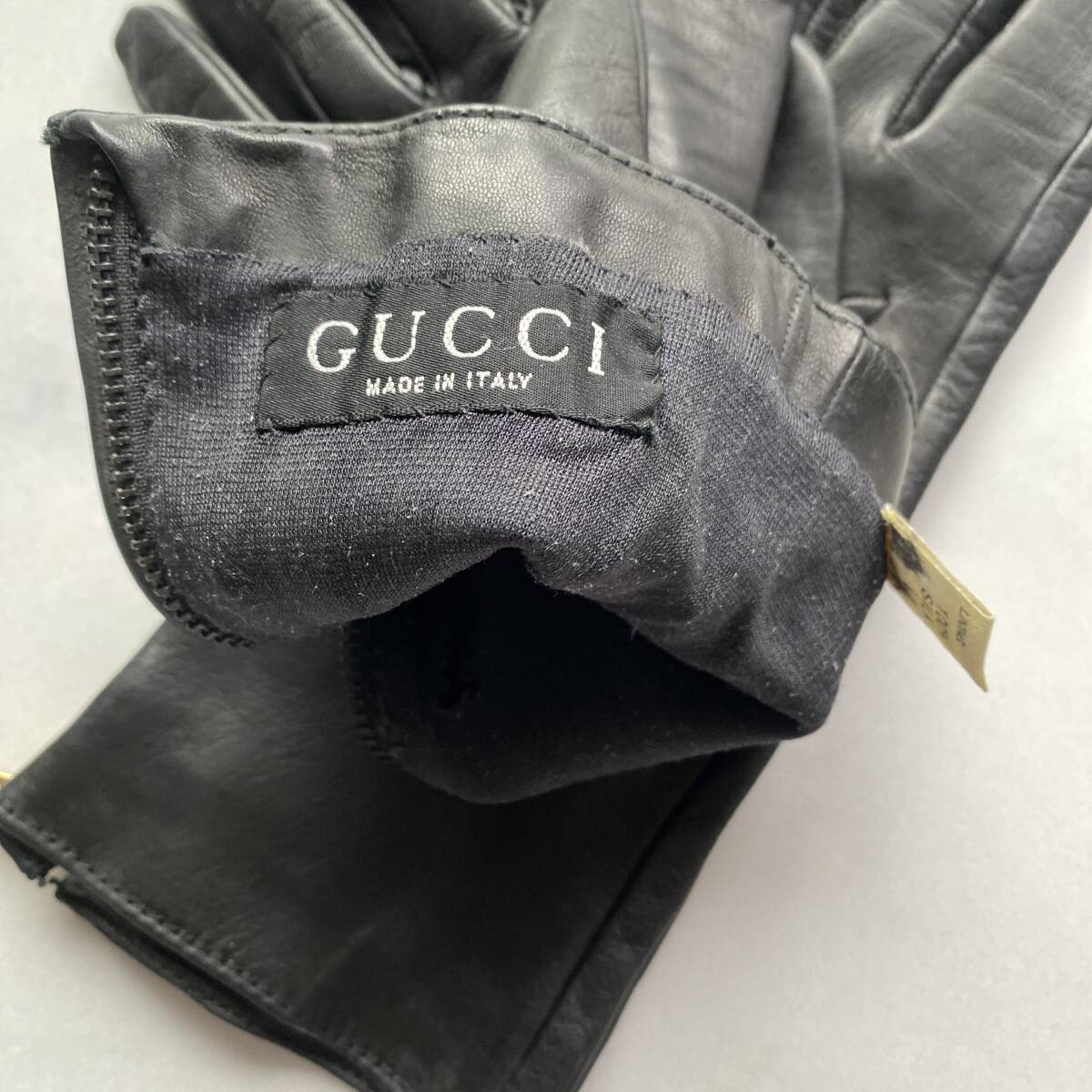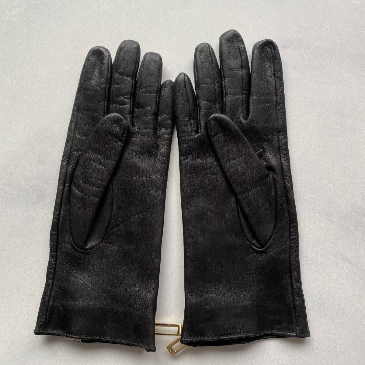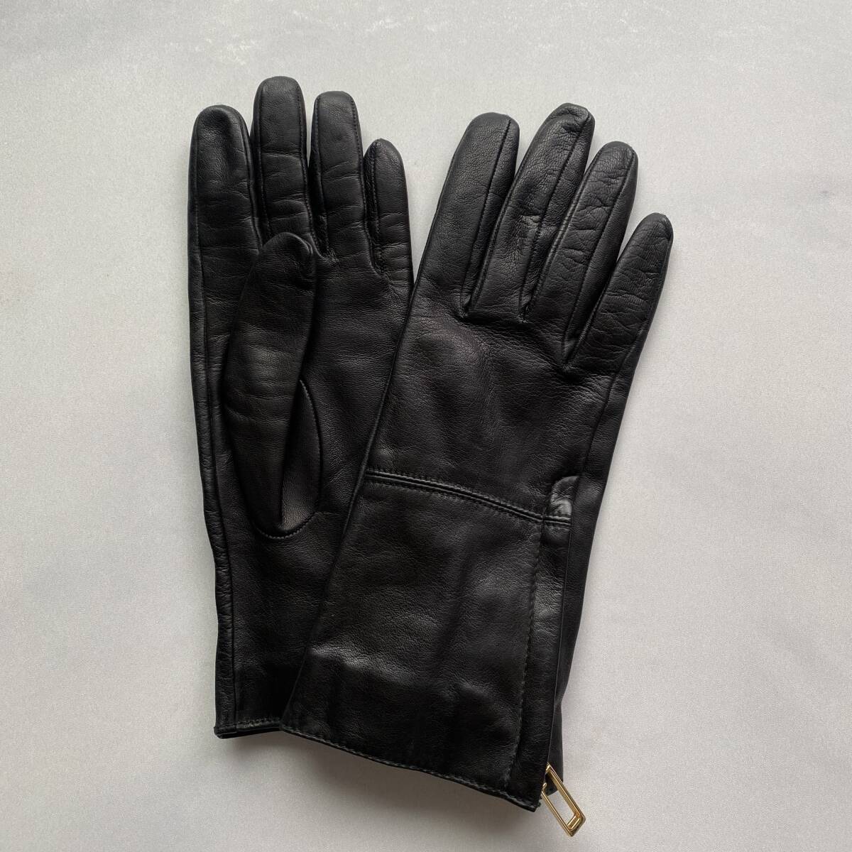 【美品】イタリア製 グッチ GUCCI レディース レザーグローブ ブラック 黒革手袋 サイズ6ハーフ シルク裏地