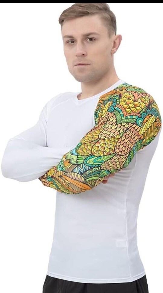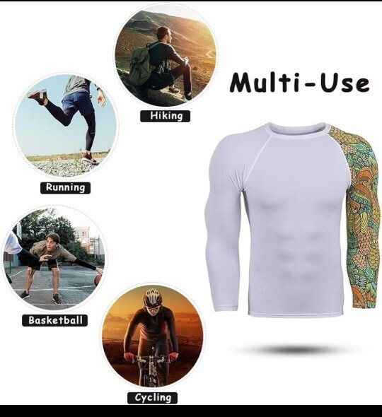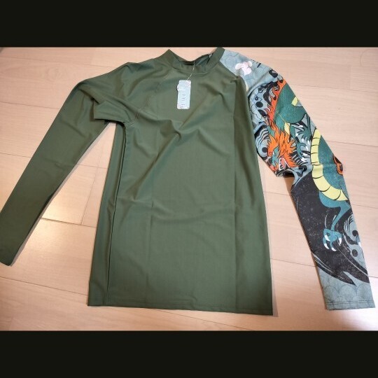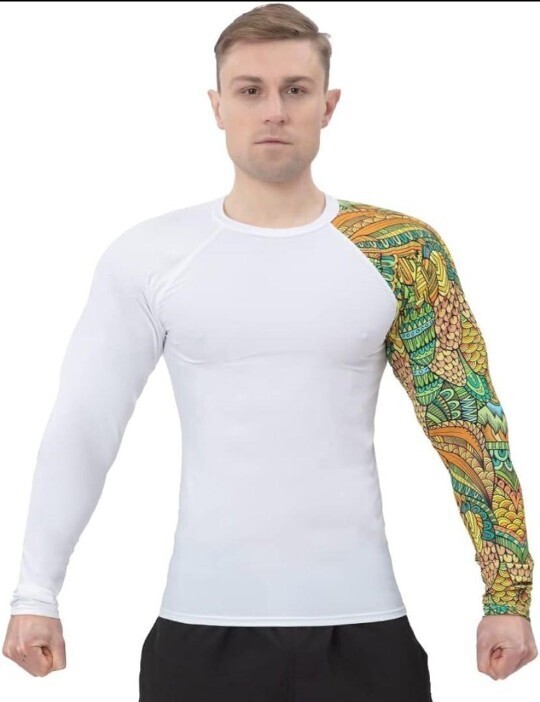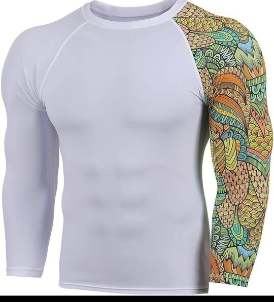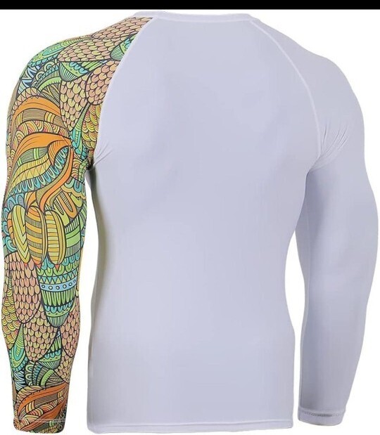 [LACOFIA] メンズ ラッシュカード 長袖 トレーニングウェア コンプレッションウェア 超軽量 速乾 アンダーシャツ タトゥー柄 ヨガ(Lサイズ)