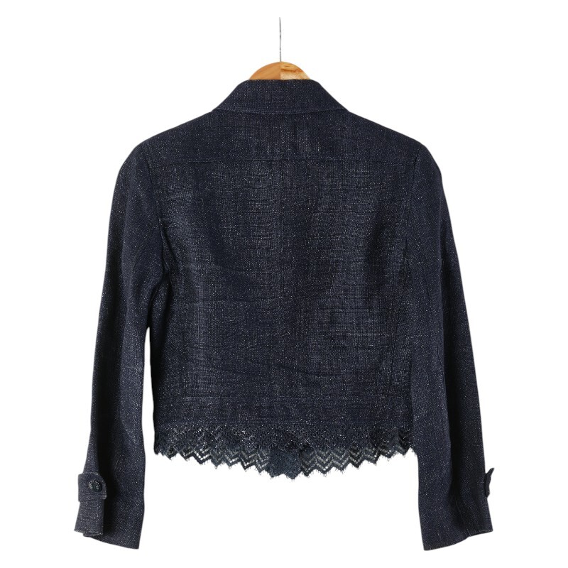 シャネル ココマークボタン レース ジャケット サイズ:38 P17259V09669 インディゴブルー リネン レディース CHANEL 【中古】
