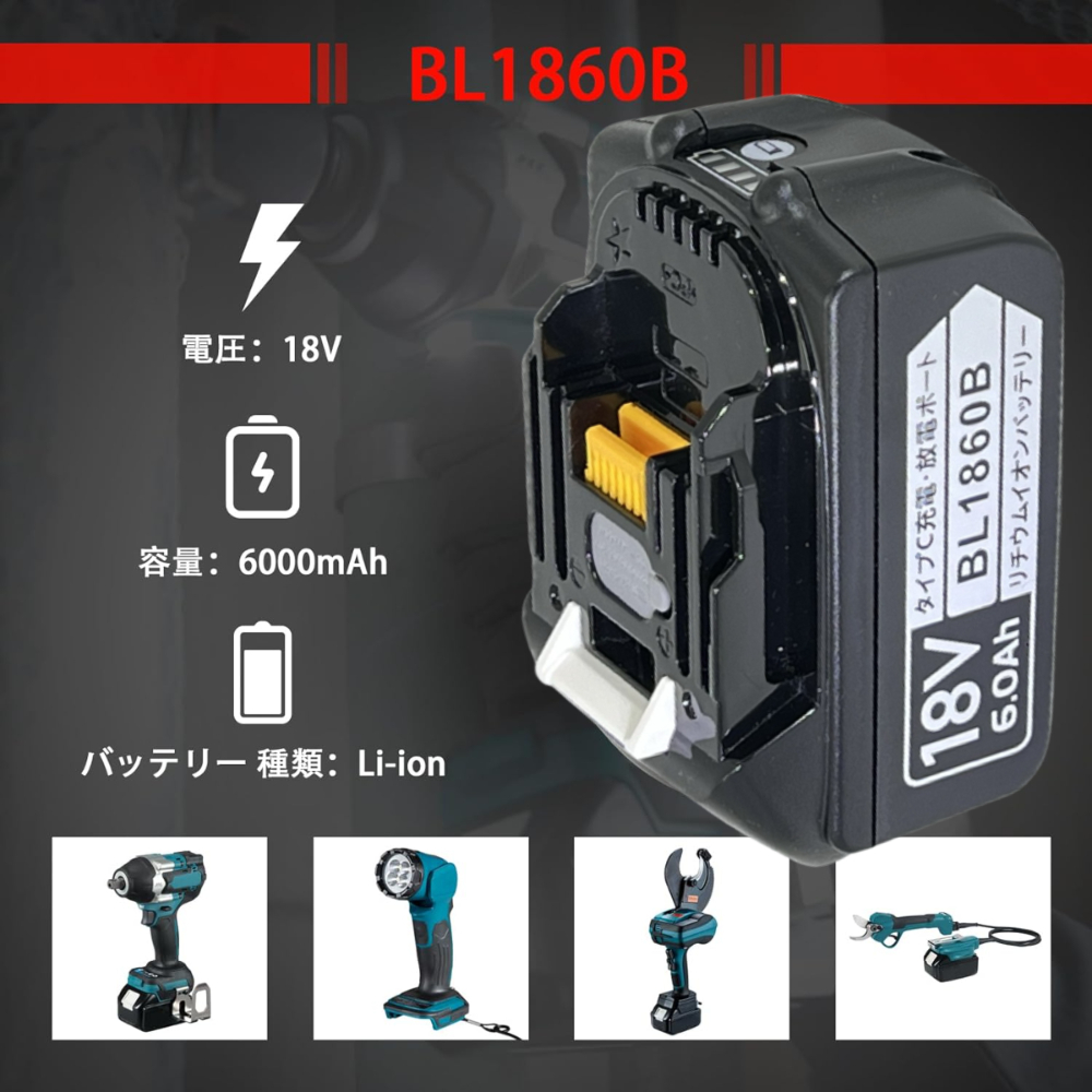 商品名 | 2個セット BL1860B タイプCポート付き 高性能精密PCB回路基板使用 最新モデル makita マキタ互換リチウムイオンバッテリー 蓄電池 ( Li-ion リチウムイオンバッテリー ) |