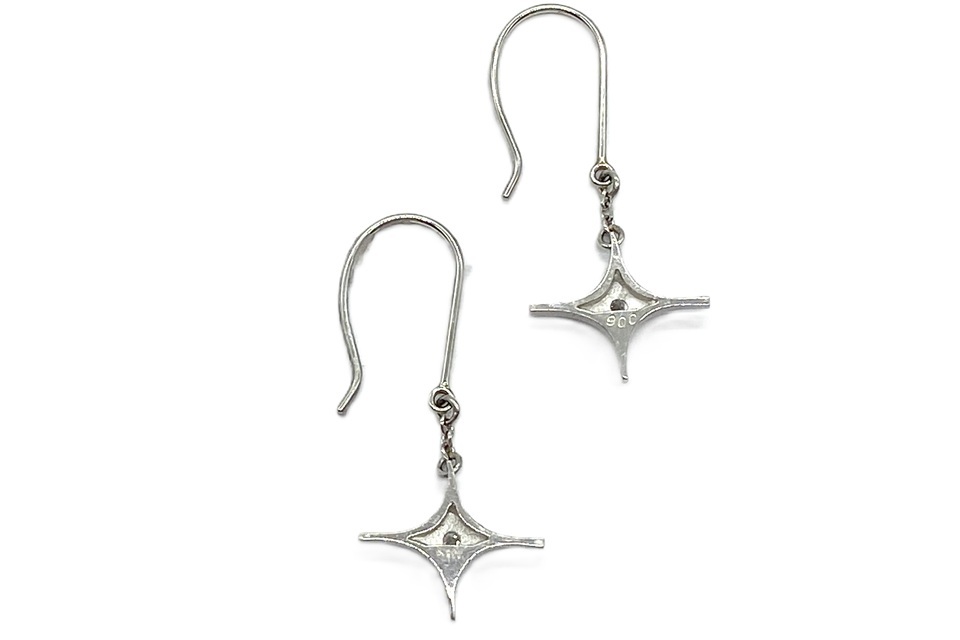 解説 | ダイヤの輝きの拡がりをプラチナで表現したような、小粋なデザイン。近年なかなか出会えない太目なフック金具の下で揺れ動き、確かな存在感を放ちます。 |