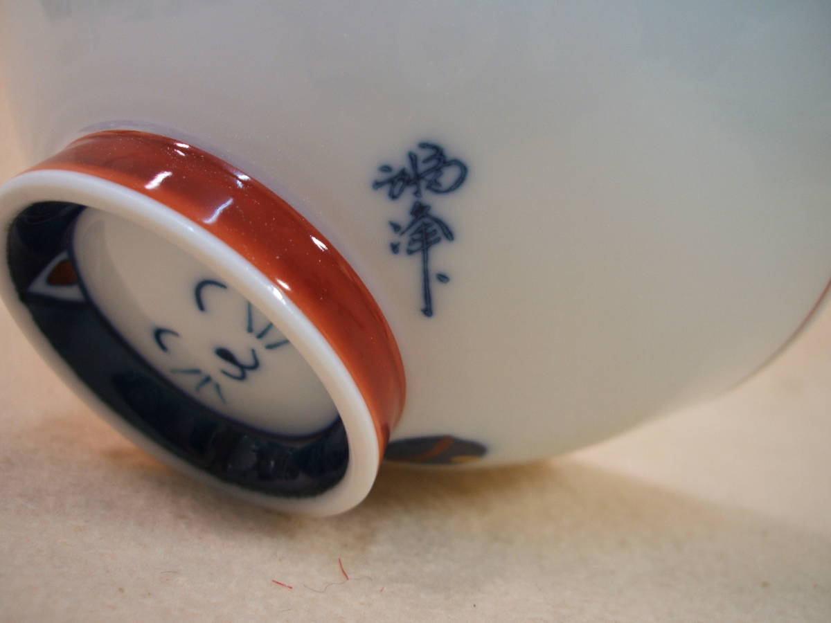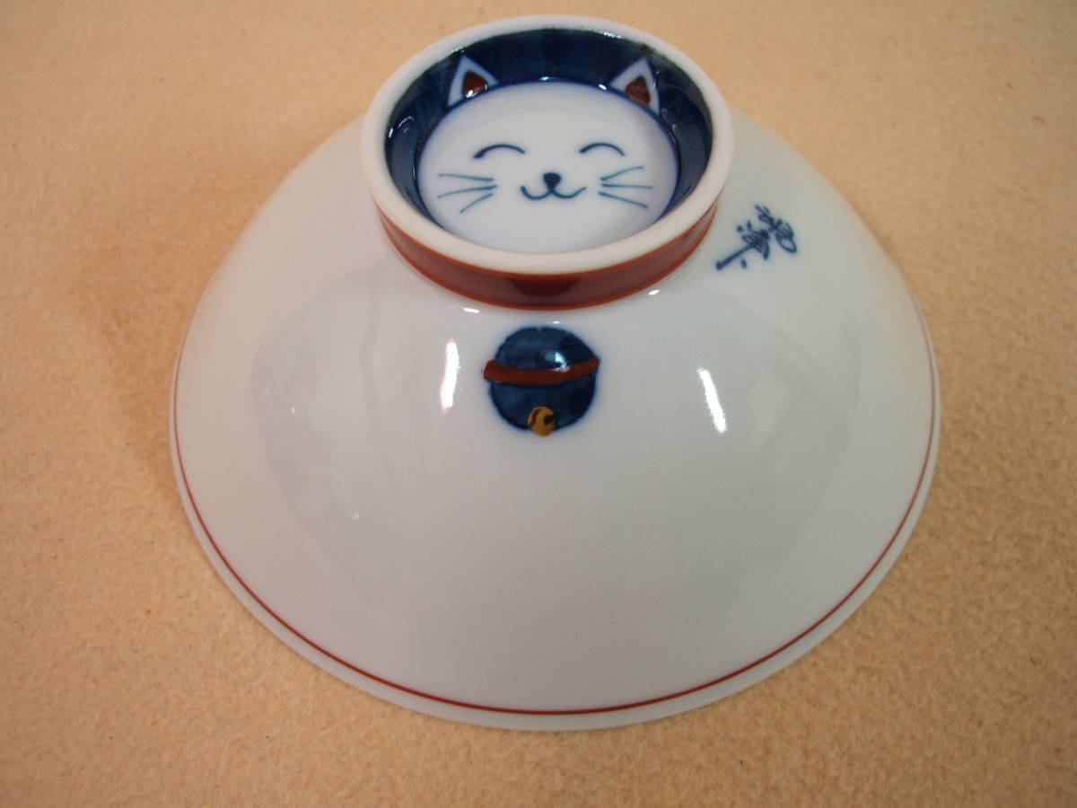 という訳で、今回は 有田焼(波佐見焼)の 鋭意 意欲的な「高級 超軽量 飯碗・小(鈴猫・赤)」1個 の出品です。