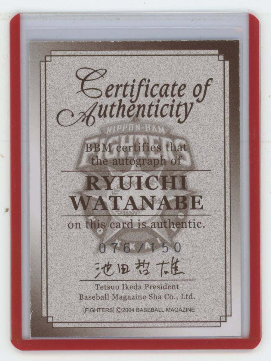 【渡部龍一】2004 BBM 北海道日本ハムファイターズ 直書き直筆サインカード[076/150] /ルーキーイヤー ※カード裏面エッジ部傷みあり。