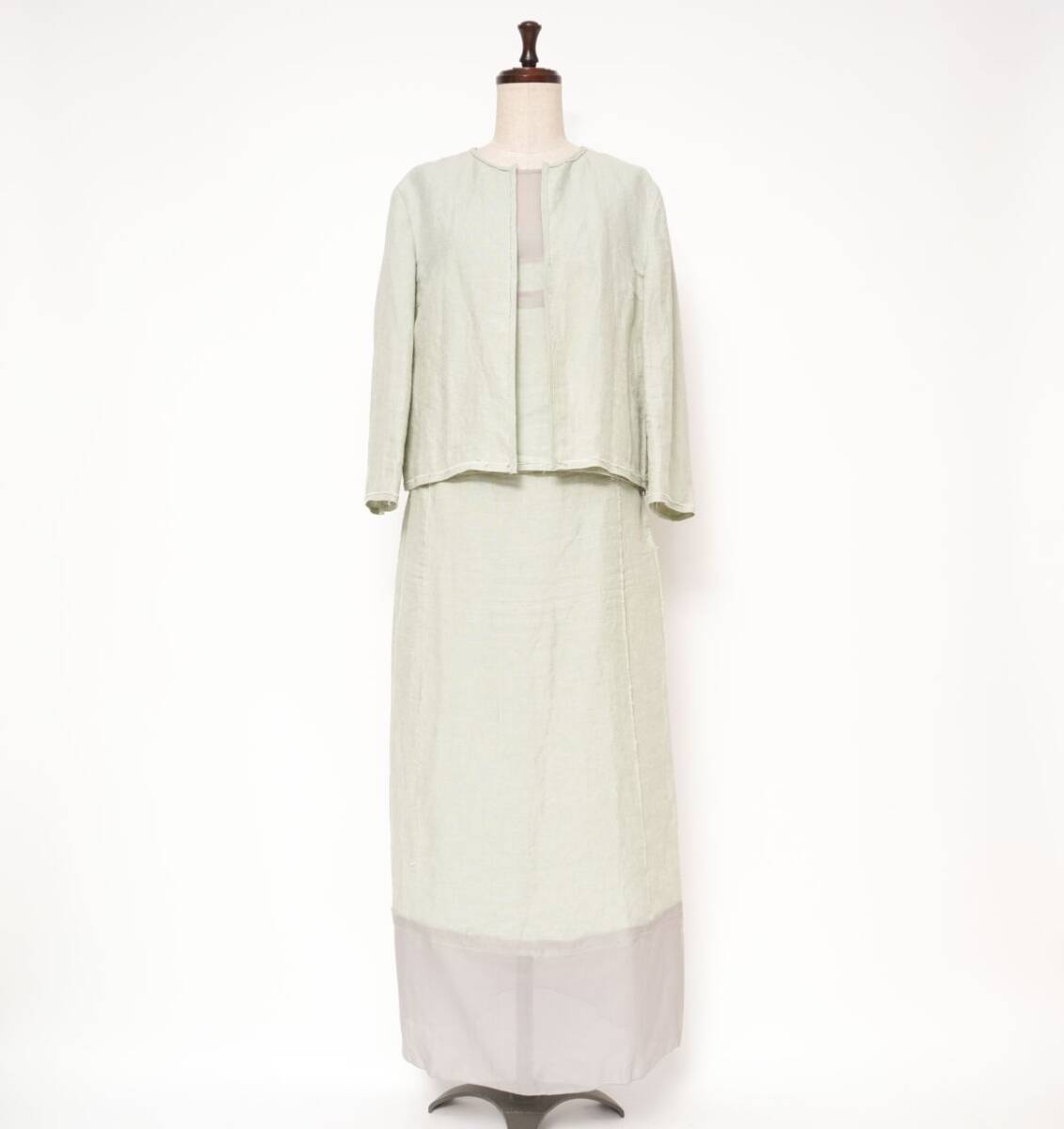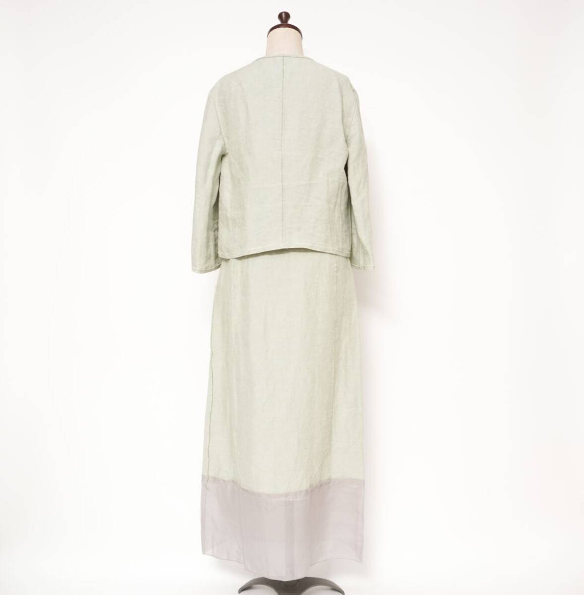 美品 MARLENDAM マーレンダム リネン100% セットアップ3点セット ジャケット スカート レディース パステルグリーン サイズ40*BD1183