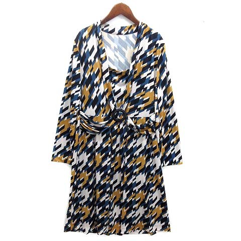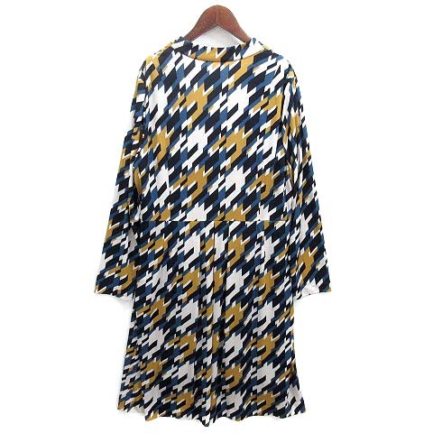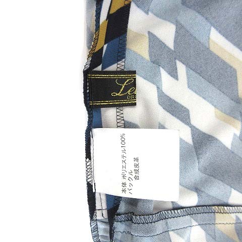 レリアン Leilian 総柄 ジオメトリック ワンピース 長袖 ブルー系 15+ 大きいサイズ レディース