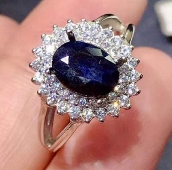 (証明書付き)女性用天然サファイアリング、7x9mm、925スターリングシルバー、本物の宝石、ファインジュエリー、記念日ギフト、