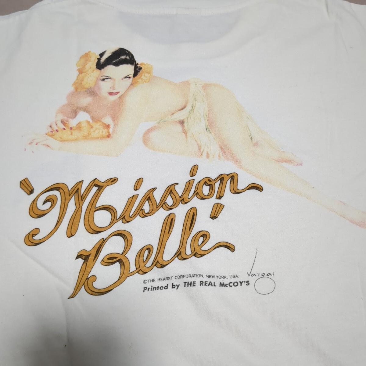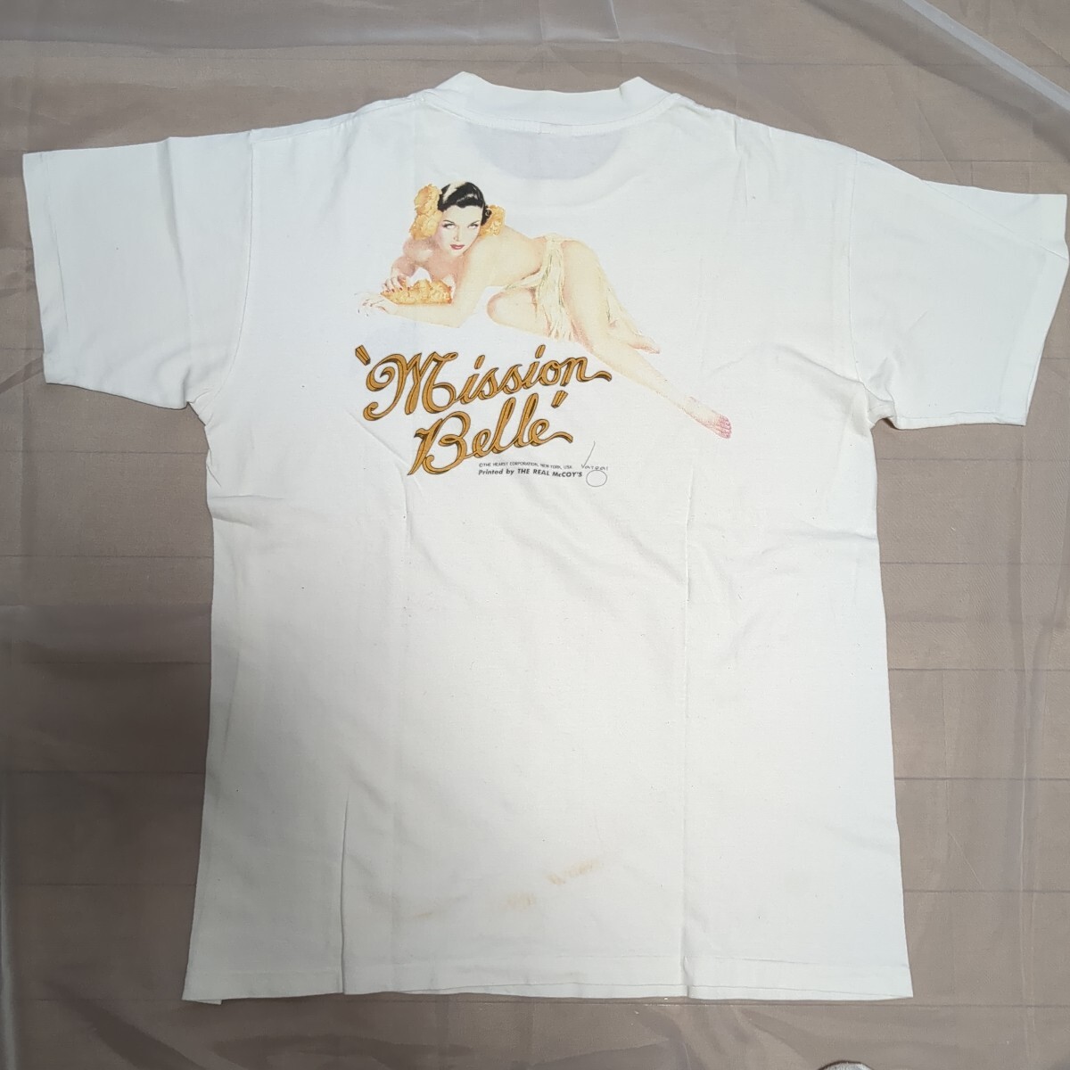 写真の物が全てです。旧マッコイズのヴァーガスTシャツになります。長期保管していた為、写真の様に前後の裾辺りにシミ、襟周りに若干シミがありました。クリーニングで落ちると思います。あくまでも一度は人の手に渡った物ですので、神経質な方はご購入をお控え下さい。ノークレーム、ノーリターン。