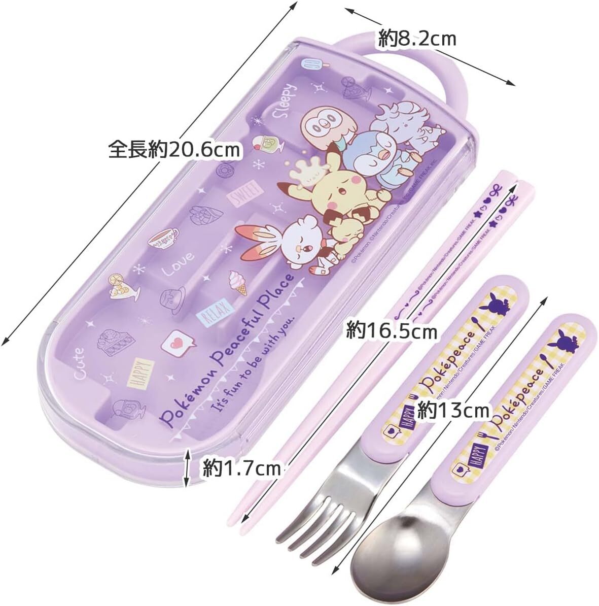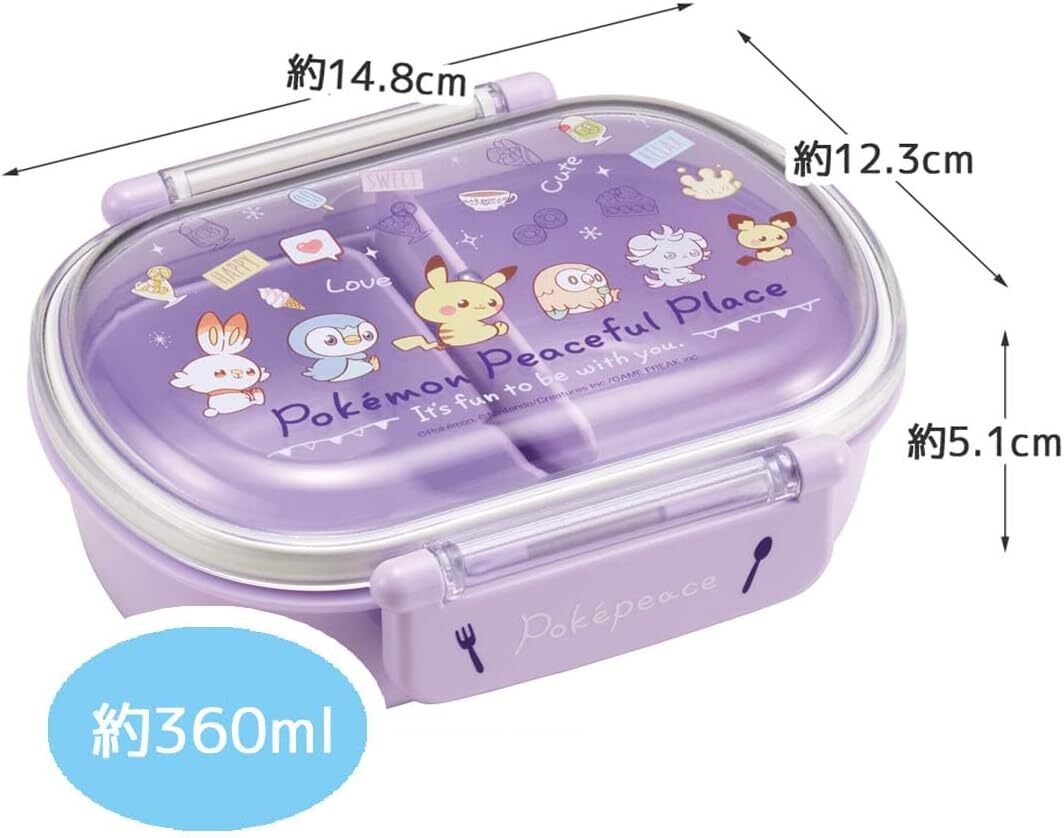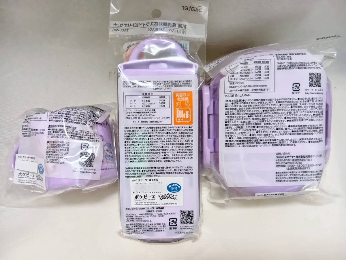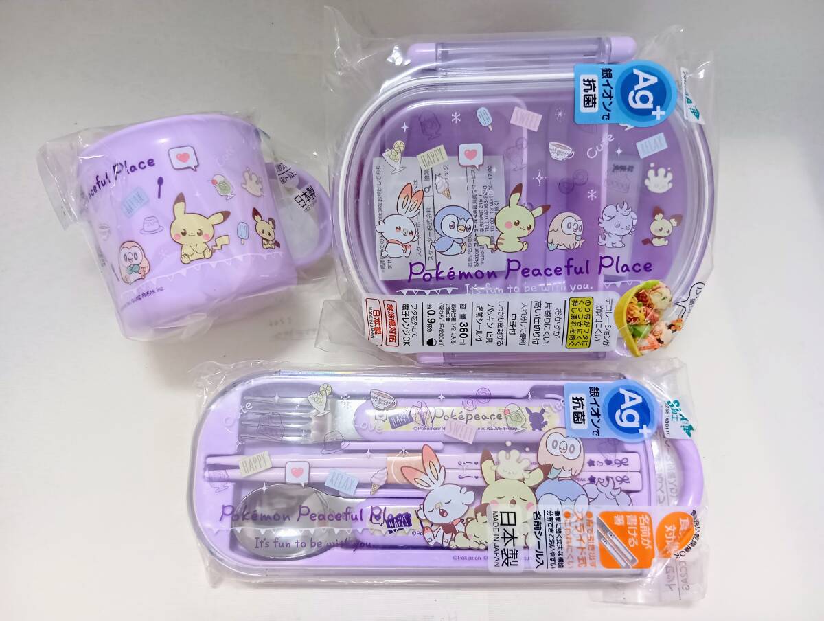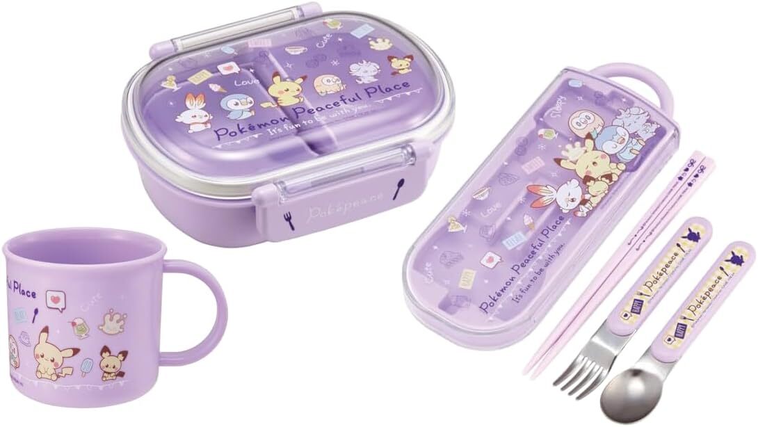 | スケーター(Skater)の新品未開封の子供用キャラクターランチボックスセットです。 お弁当箱・トリオセット・プラコップの3点セット。 ポケットモンスター ポケピースのピカチュウ・ヒバニー・ポッチャマ・モクロー・ニャスパー・ピチューたちのデザインです。カラーは薄紫色・パープル系。 同シリーズでのセット品ですので、こどもの入園準備や入園入学セットとしておすすめです。 幼稚園・保育園の運動会や遠足の準備にも。 その他のキャラクター360mlお弁当箱3点セットも出品中です♪ ポケモンのお弁当箱セット♪ ゲームキャラクターのお弁当箱セット♪ 女の子におすすめのお弁当箱セット♪ <セット内容>〔シリーズ名:ポケピース24〕 ①【抗菌ふわっとフタタイトランチボックス 1段 360ml/QAF2BAAG】 中子付き、フタを外して電子レンジ可、食洗機対応、名前シール付 ●容量:360ml(130mlの中子1個付き) ●商品サイズ約:横148×奥123×高56mm ●日本製 ●JAN:4973307665080 ②【抗菌トリオセット/TACC2AG】 スライド式ケースとお箸・フォーク・スプーンのセット 食洗機対応、名前シール付 ●商品サイズ約:ケース198×76×17mm、箸16.5cm、スプーン・フォーク13cm ●重さ:150g ●日本製 ●JAN:4973307665066 ③【抗菌プラコップ/KE4AAG】 飲料用、歯磨き用のカップ 電子レンジ可、食洗機対応、名前シール付 ●容量:200ml ●商品サイズ約:直径74×68mm(取っ手含まず) ●日本製 ●JAN:4973307665073 ==== 参考価格:定価3,905円(税込合計、送料別) その他注意事項: ・バラ売りには対応していません。即購入OKです。 ・送料込みの出品ですのでお値下げ交渉はご遠慮ください m(_ _)m ・すり替え防止のため不具合以外の理由での返品は受け付けておりません。 ・上記ご理解いただける方のみ購入をお願いします。 Pokemon Peaceful Place Pikachu Japanese Lunch Bento Box Set for Toddlers Kids Girls キャラクターお弁当箱セット出品中♪ |