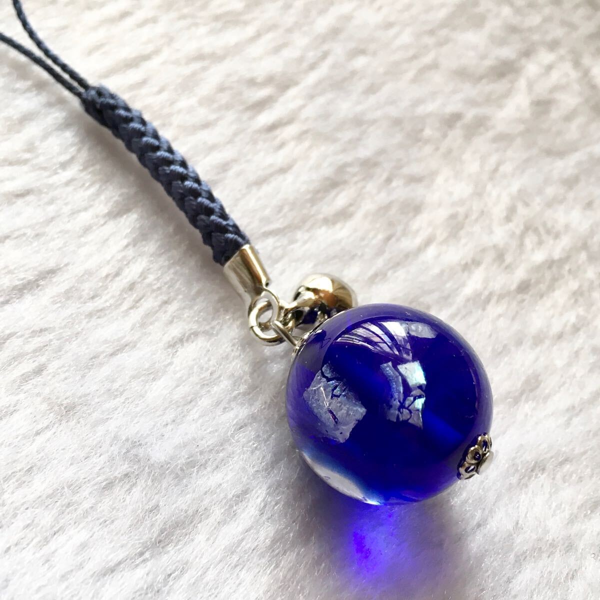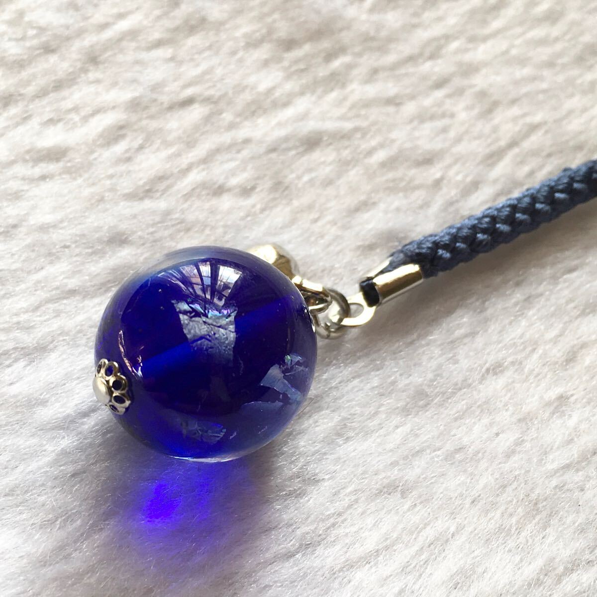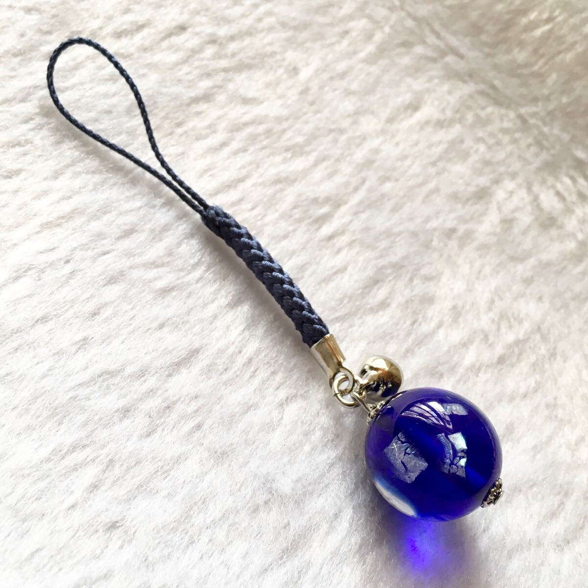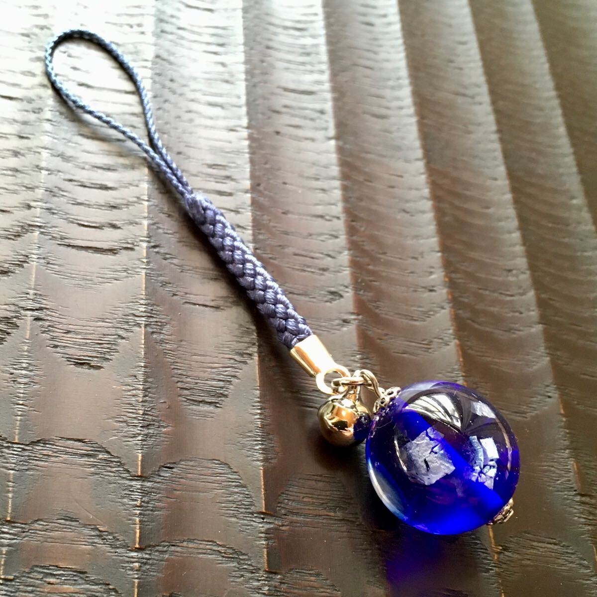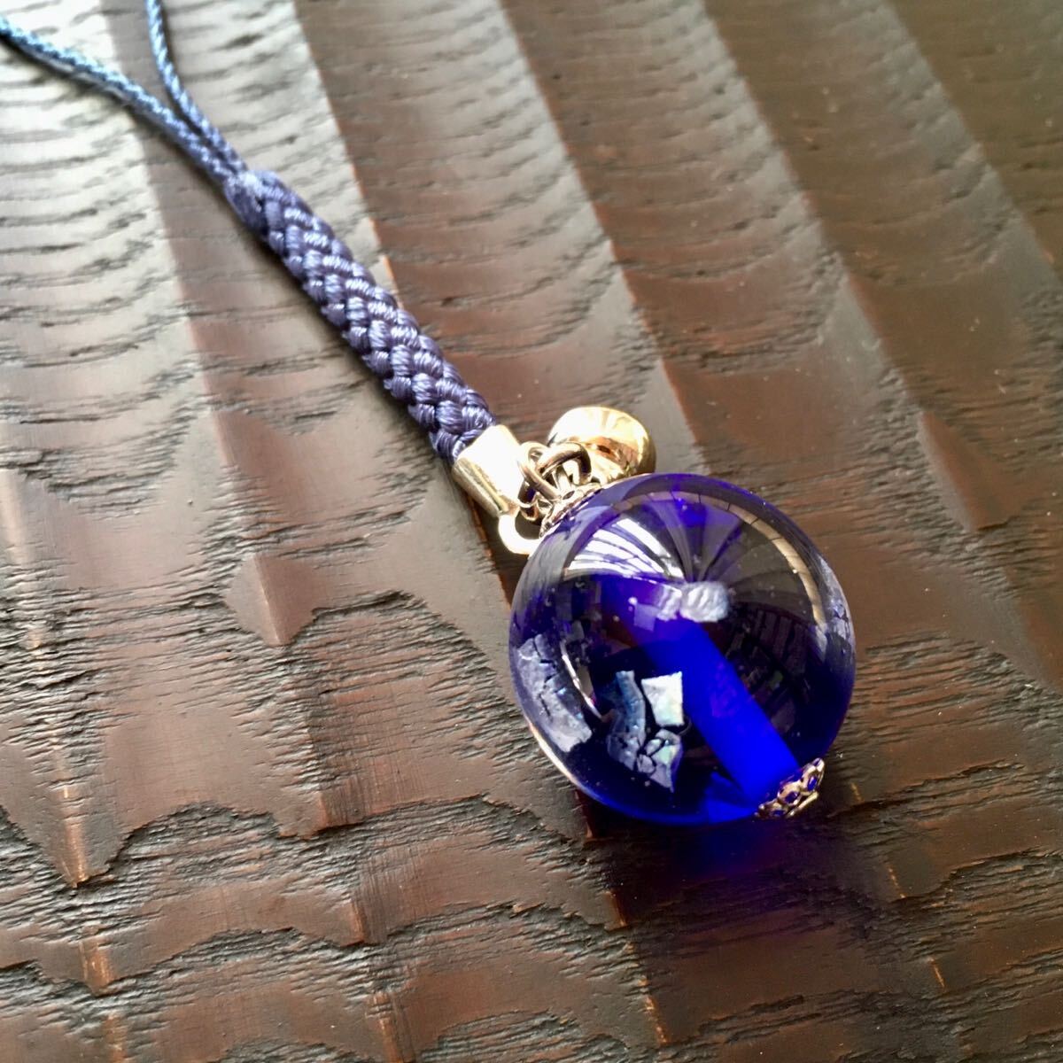 バーナーワークという技法で作った手作りのトンボ玉の根付です。