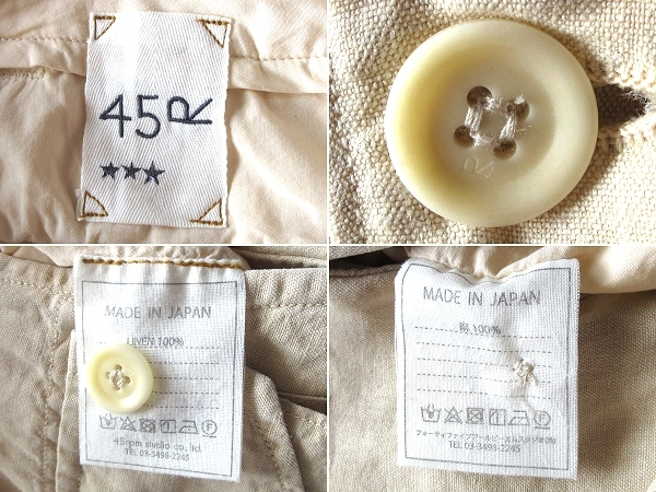 45R 45rpm 2021SS リネンの908イージーセイルショートパンツ Rロゴ ショーツ 3 ベージュ 男女着用可 定価37400円 日本製 Umii908 Badou-R