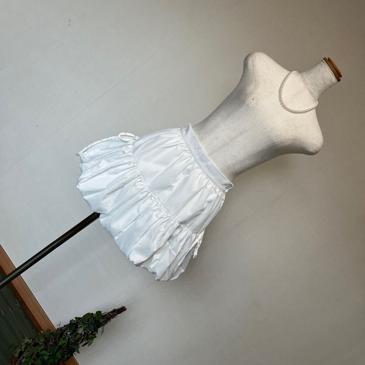 ▼デザイン ・裾がバルーンになったトレンドライクなデザイン ・フロントの同素材のリボンがさりげないポイントに◎ ・パンツ型の裏地がついているので安心して着用していただけます
