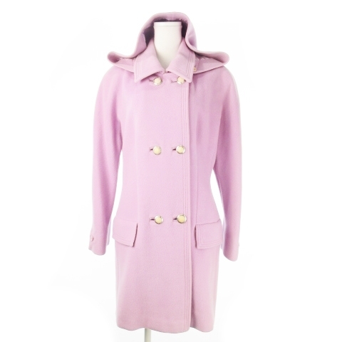 ジャンニヴェルサーチ ヴェルサーチェ GIANNI VERSACE ステンカラーコート フーディ メデューサロゴボタン ウール 42 L 紫