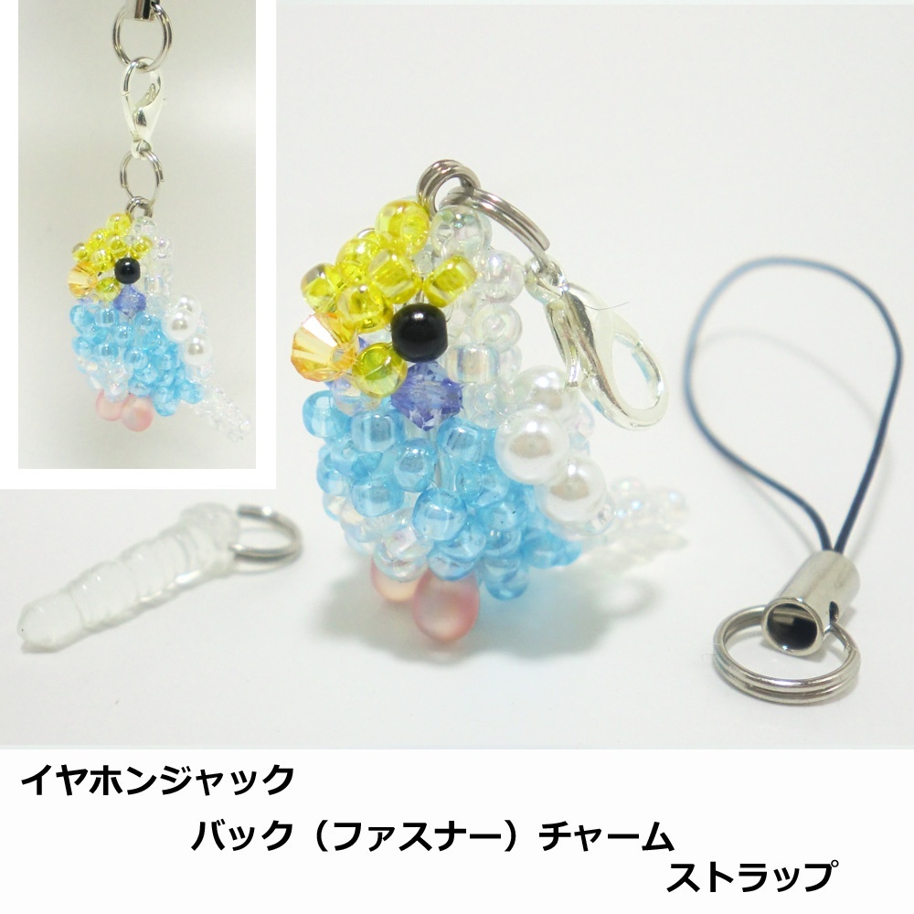 ビーズの小鳥★3WAY(ストラップ・イヤホンジャック・ファスナーチャーム)工房小鳥屋さん