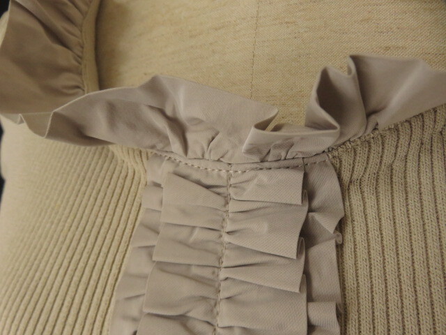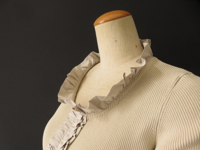 ■新品同様 キング社製【JUDY】ジュディコレクション 高級 ストレッチ フリル ニット カットソー 9号 M 送料185円 ベージュ W1758