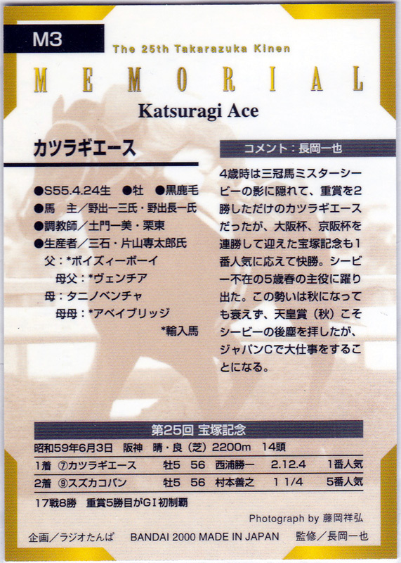 No.M-3 メモリアル MEMORIAL カツラギエース
