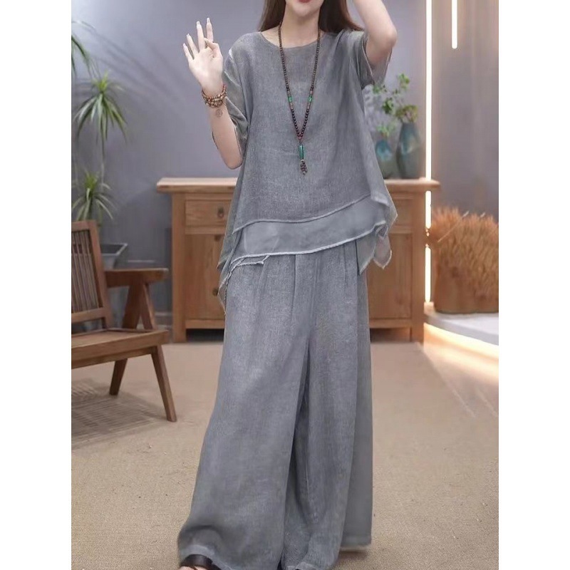 人気新品セットアップ レディース ブラウス シャツ ワイドパンツ 春 夏 秋 トップス パンツ カジュアル 定番 上下セット きれいめ