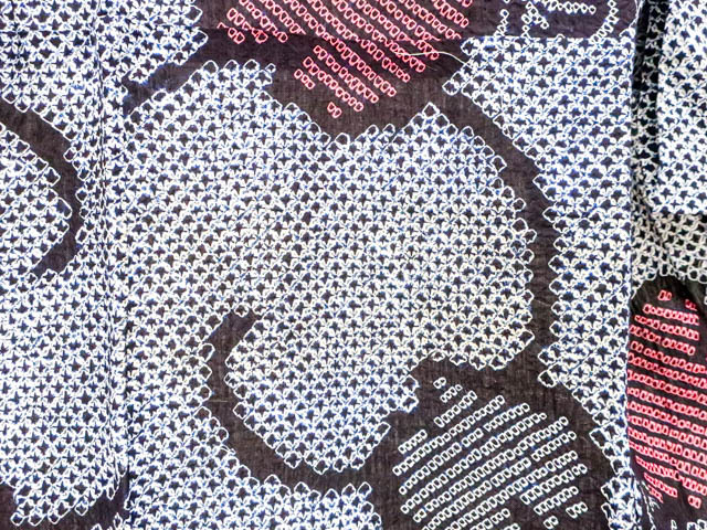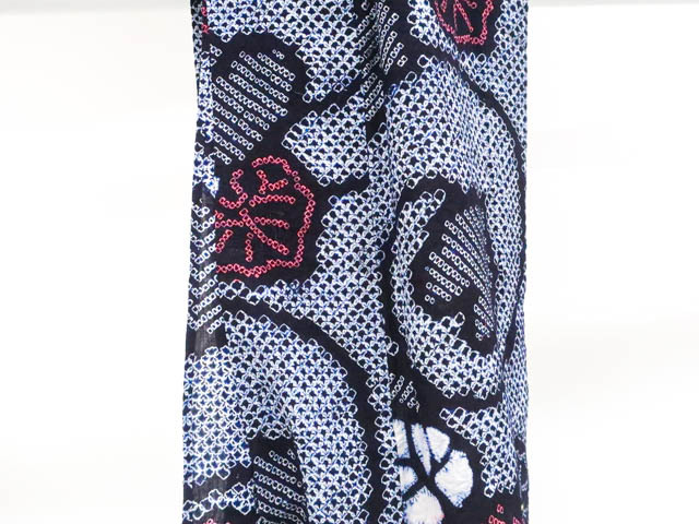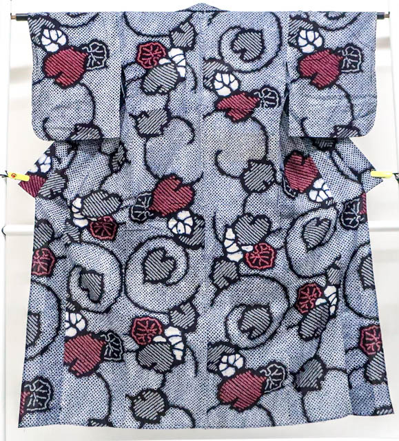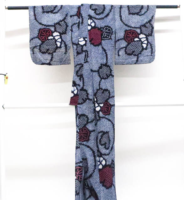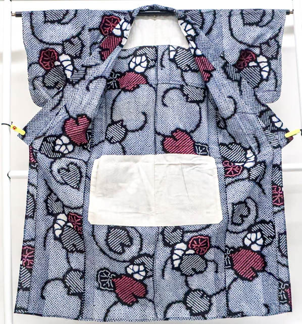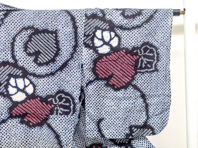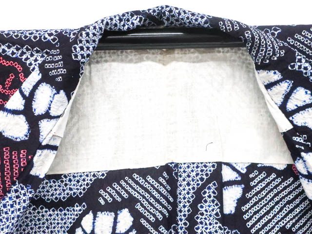 | 肩当て・居敷当て付です。リサイクル商品のため、所々染色滲み、絞りにアクシミ、全体の所々シミがございますがご着用いただけると存じます。 地色は藍色・灰白です。 1枚目の画像が近いお色かと思われます。 素材は綿です。 |