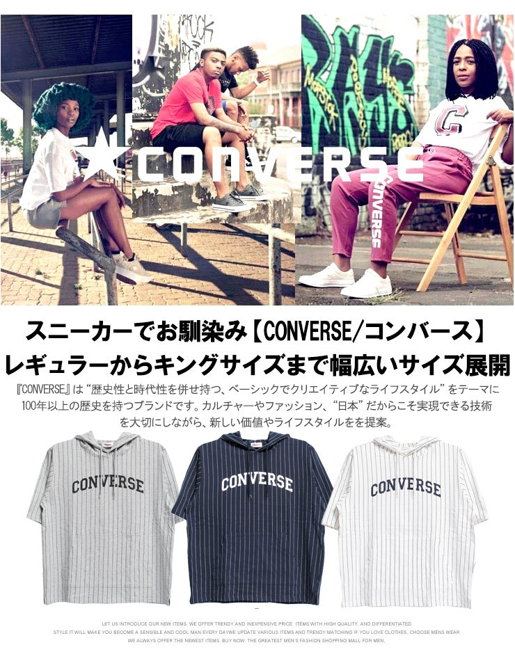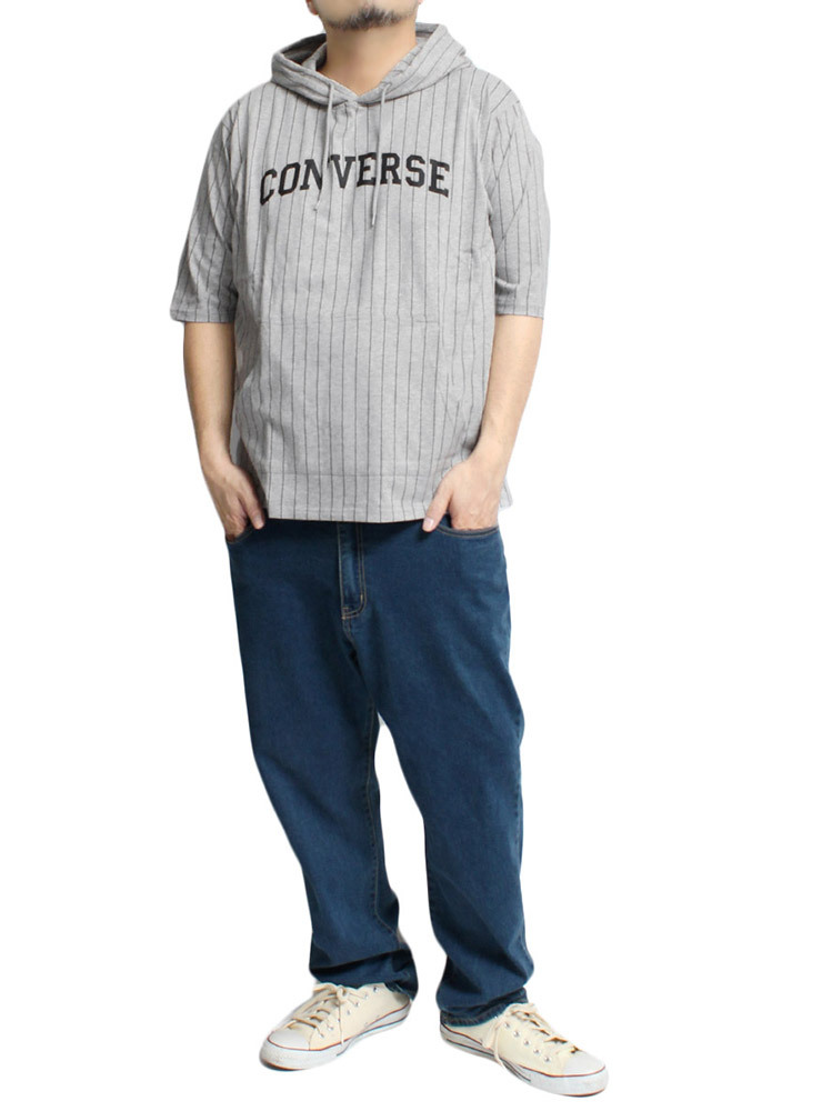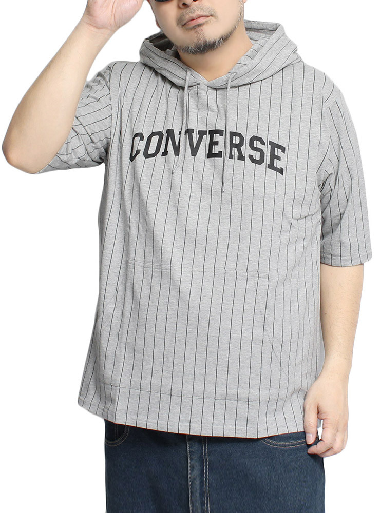 商品名 | 【新品】 5L グレー コンバース CONVERSE 半袖 パーカー メンズ 大きいサイズ プルオーバー ロゴ ストライプ プリント Tシャツ |