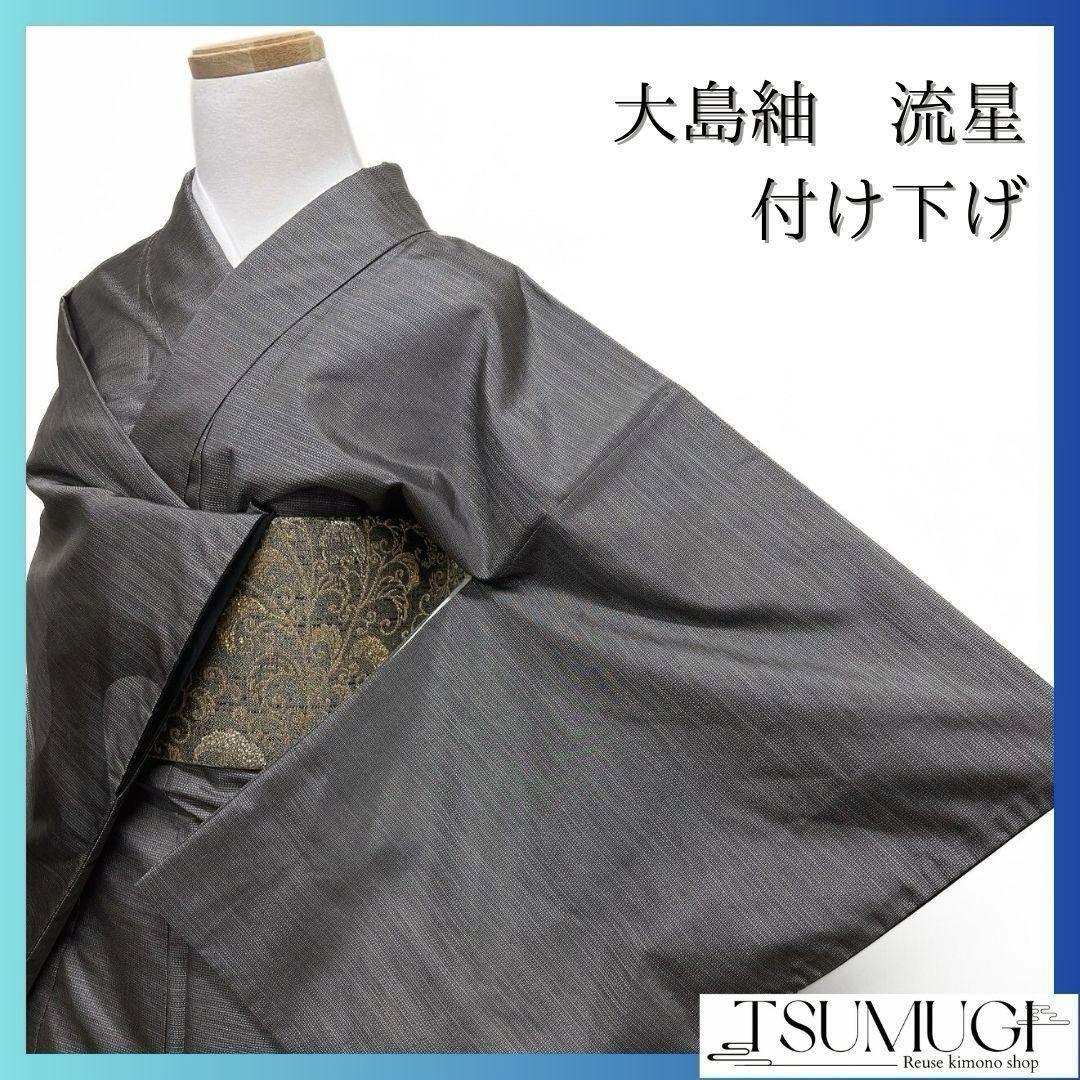 大島紬 流線 モノトーン グラデーション 付け下げ 着物 023a p