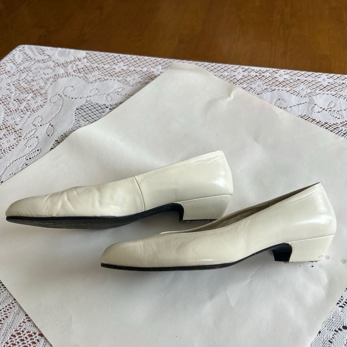 パンプス レザー オフホワイト 35.5 ヒール3cm