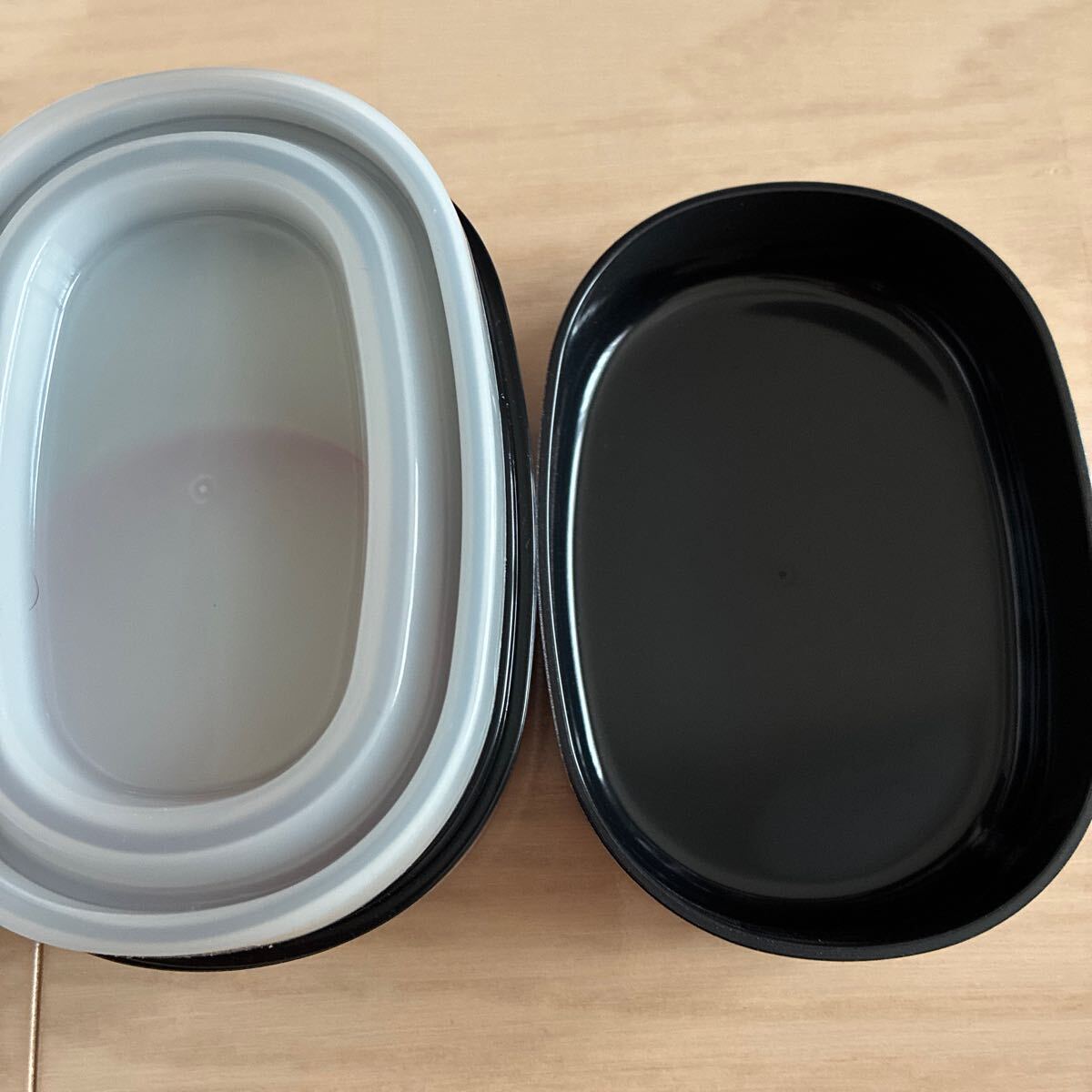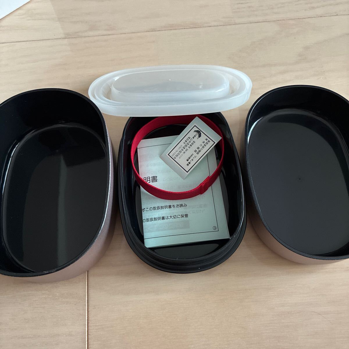 いただいたまま箱での保管です。長期保管品のため、箱等は時代汚れがあります。箱の大きさは、約15×9cm、高さは約10.5cmです。見た感じはアルミの弁当箱のように見えますが、漆器だそうです。
