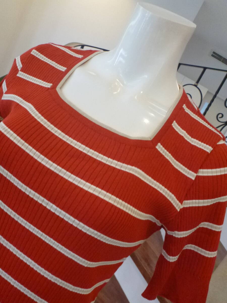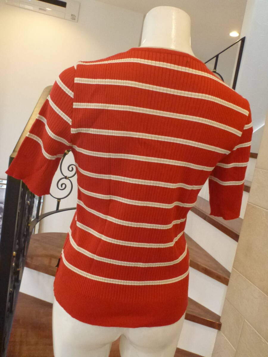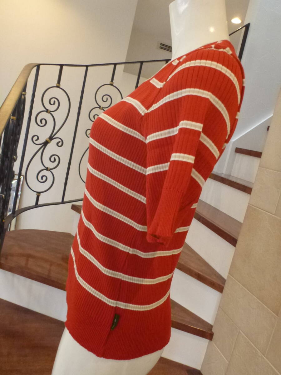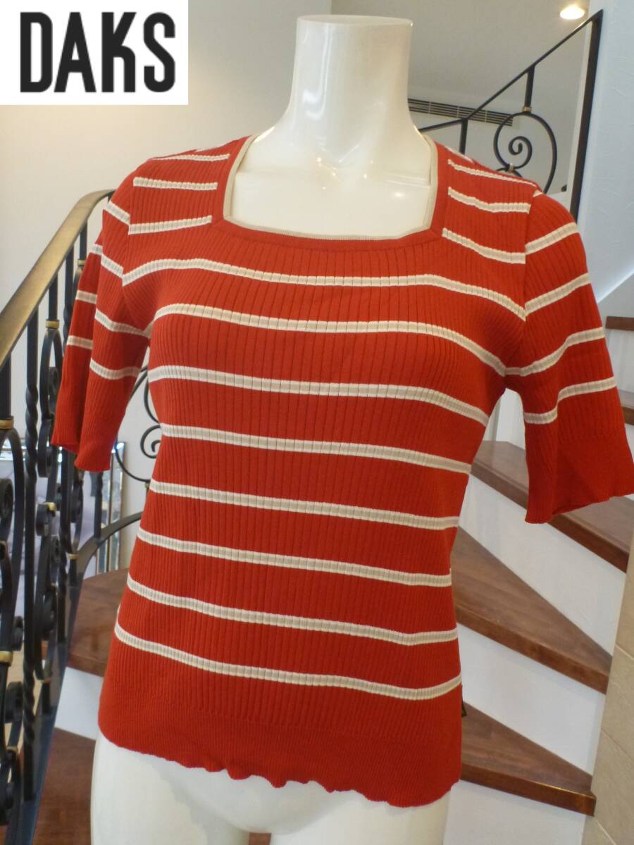 3万 超美品 DAKS(ダックス)★赤×白×ベージュ ボーダー 半袖セーター 38 M相当