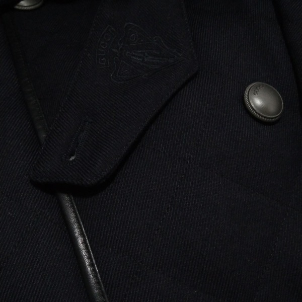 グッチ GUCCI サイズ48 M 381010 Z6987 - 黒×ダークネイビー メンズ 長袖/一部レザー/中綿/秋/冬 コート