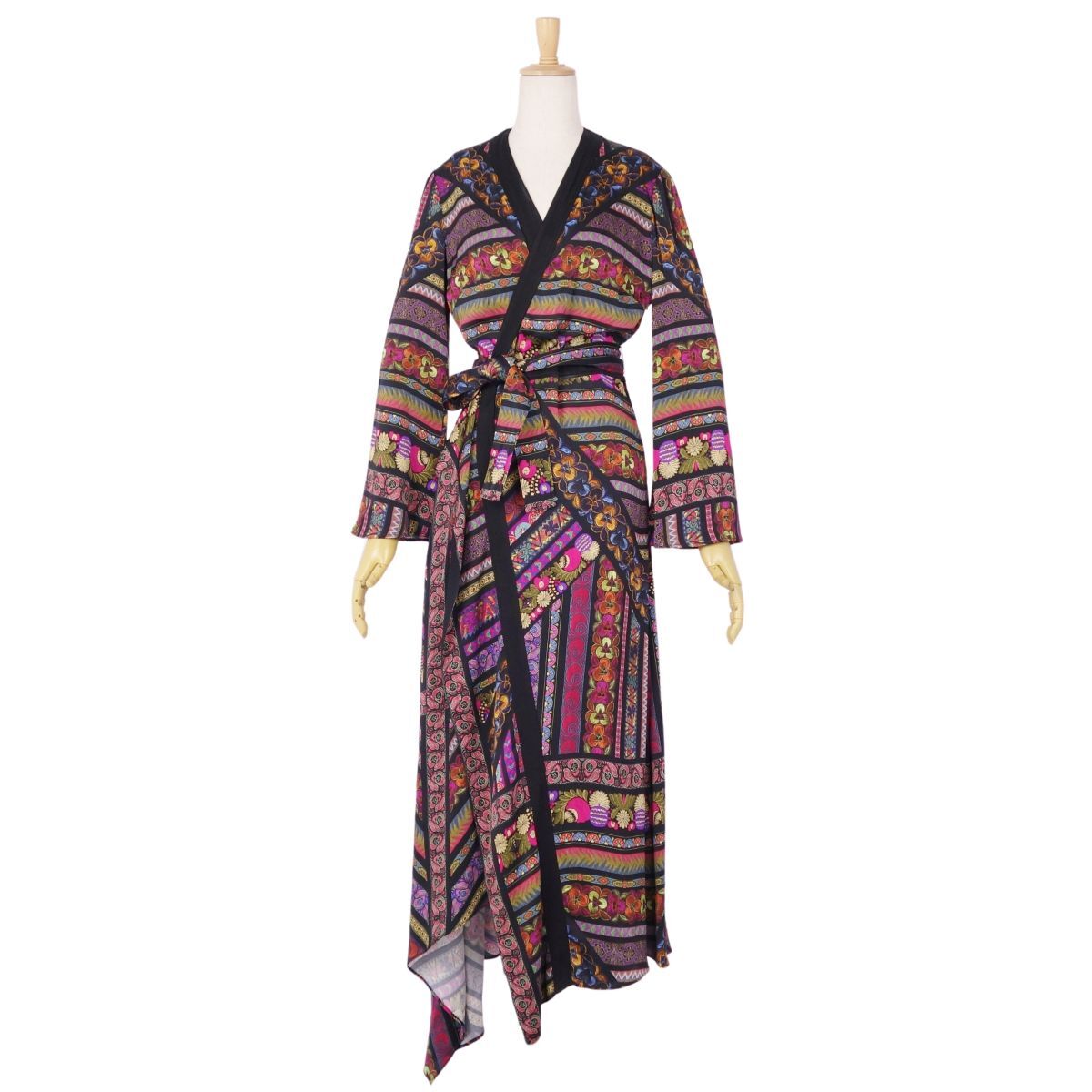 | 美品 エトロ ETRO ワンピース ロングスリーブ 長袖 総柄 ジャージー トップス レディース イタリア製 38(M)マルチカラー |