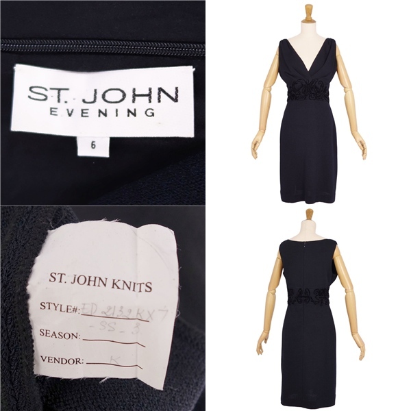 | 美品 セント ジョン ST.JOHN EVENING ワンピース ノースリーブ ニット トップス レディース 6(S相当) ネイビー |