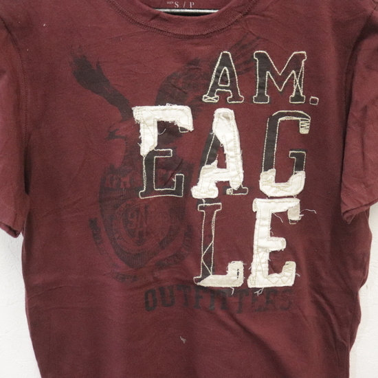 商品名 Q515 2000年代製 AMERICANEAGLE 半袖Tシャツ■00s 表記Sサイズ ボルドー アメカジ ストリート 古着 激安 希少 オールド