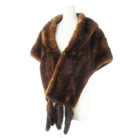 ノーブランド ファーショール ファーストール マフラー ティペット ミンク 毛皮 フリンジ 茶 ブラウン /CK29 ■GY18 レディース