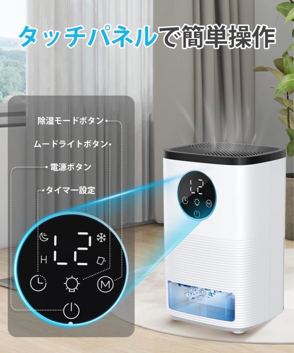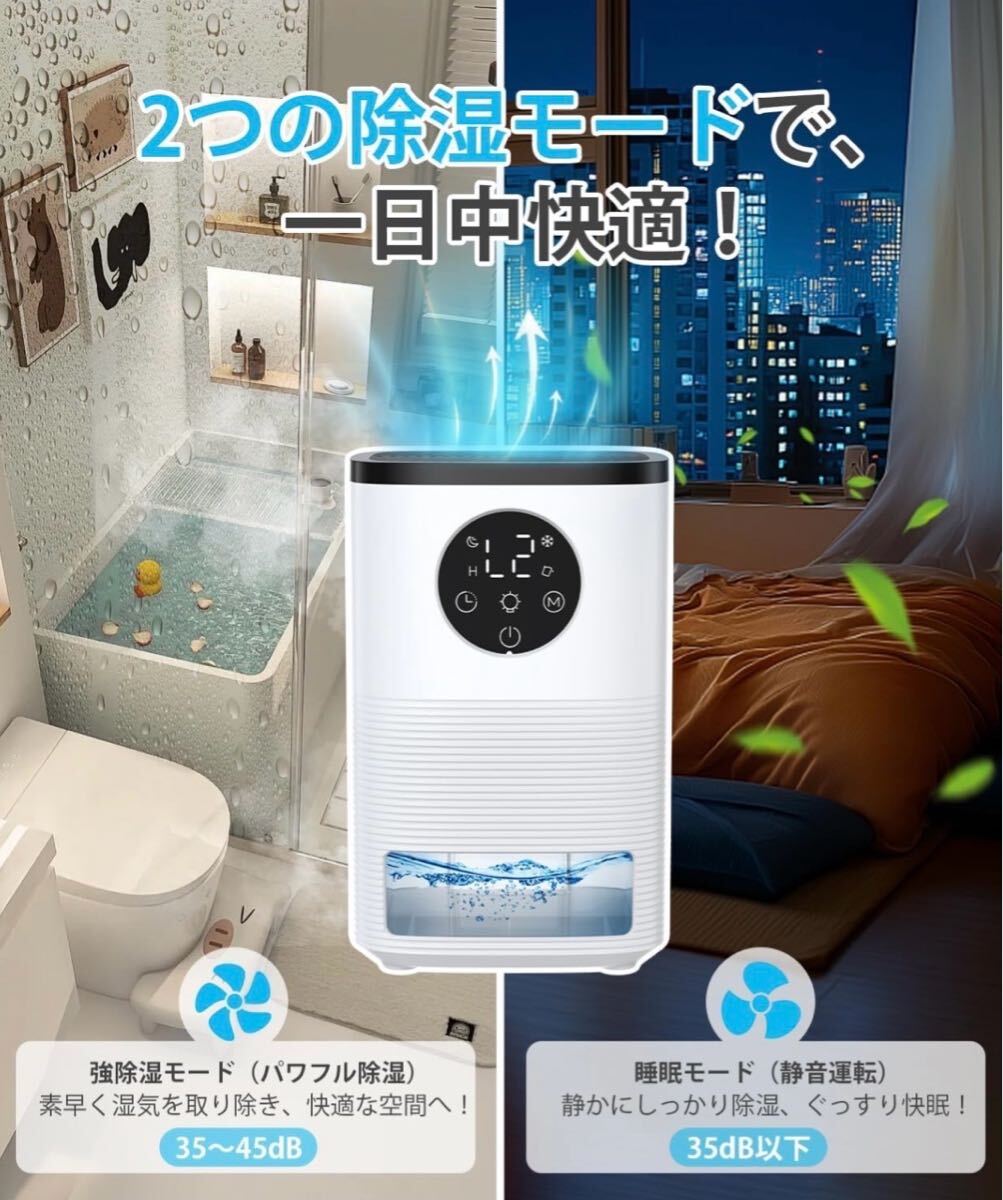 大画面タッチパネル搭載で、操作が直感的で簡単。ボタン押下時にブザー音で操作確認が可能、使いやすさを追求。強除湿モードと睡眠モードの2つの除湿モードを搭載。強除湿モードでは高出力で素早く除湿、睡眠モードでは低騒音運転で快適な睡眠環境を確保。どちらのモードも簡単に切り替えられ、お好みの除湿環境を作り出せます。