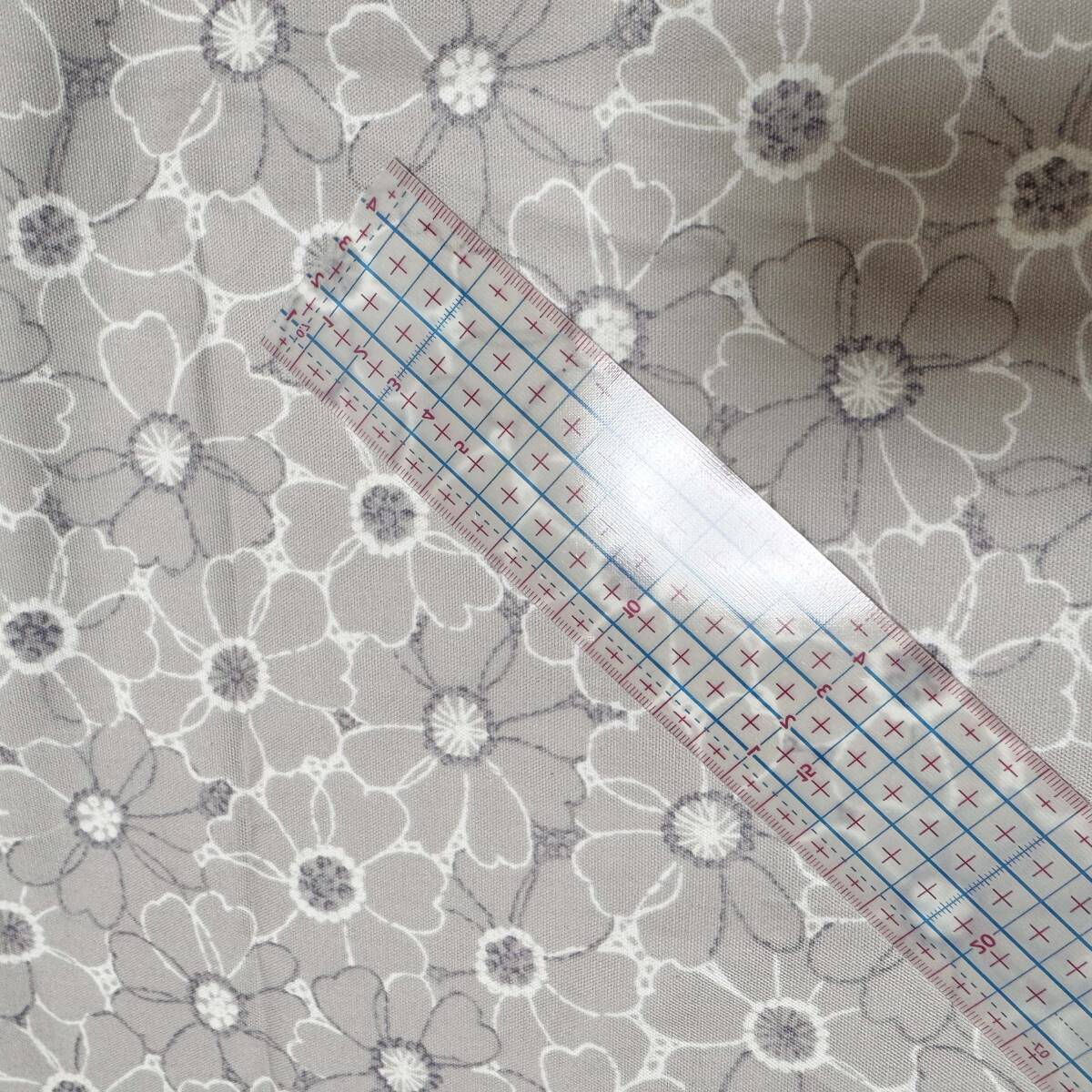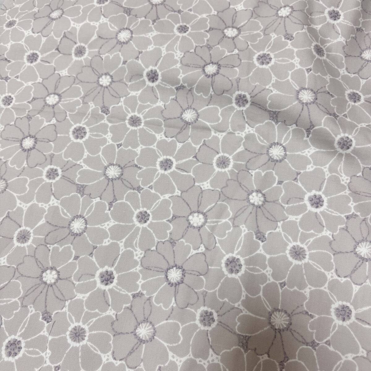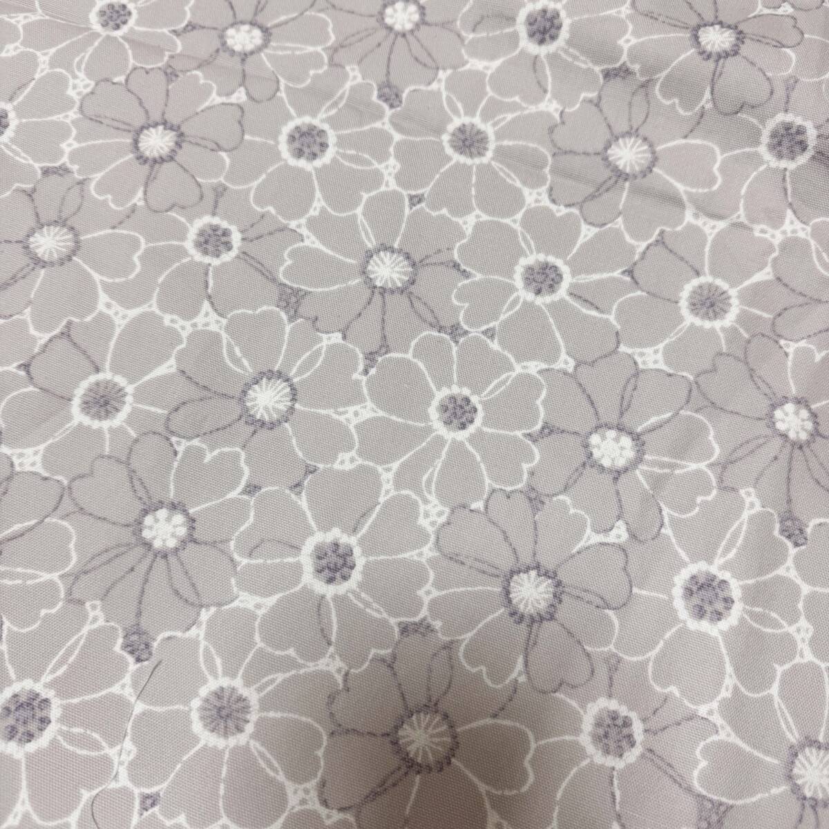 レース風刺繍風プリントのアネモネ花柄★綿オックス生地はぎれ布1mエクリュ