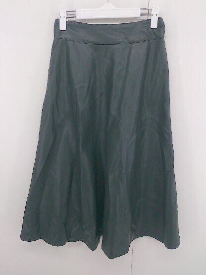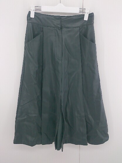 ◇ ZARA モード系 フェイクレザー タック ロング フレア スカート サイズEUR S USA S MEX 26 ダークグリーン レディース E