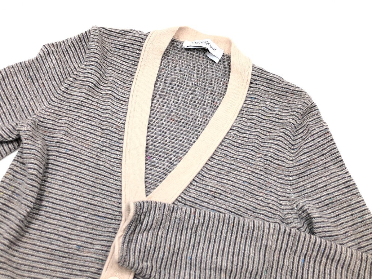 超美品【イヴサンローラン】272311 Y2NRF カシミア×アルパカ×絹×麻混 長袖ニットカーディガン (レディース)XS 茶系 伊製 ◯17LN5739◯